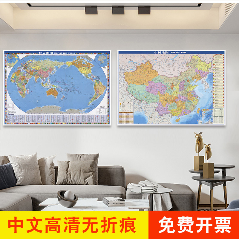 中文世界地图墙贴挂图办公室装饰画挂画客厅墙画卧室可移除书房画