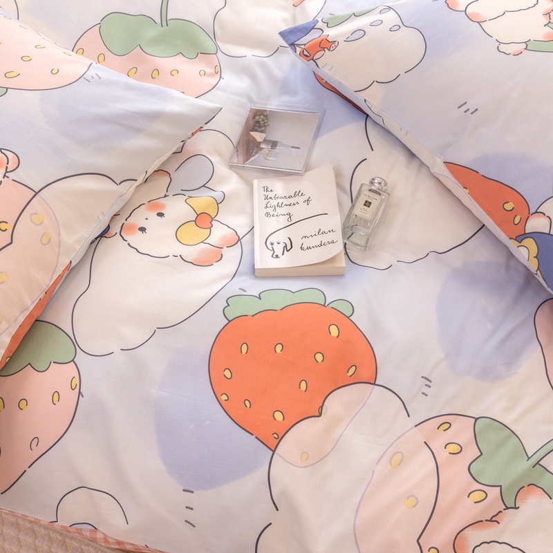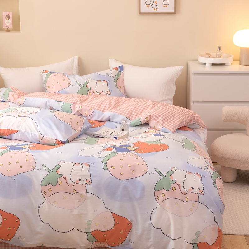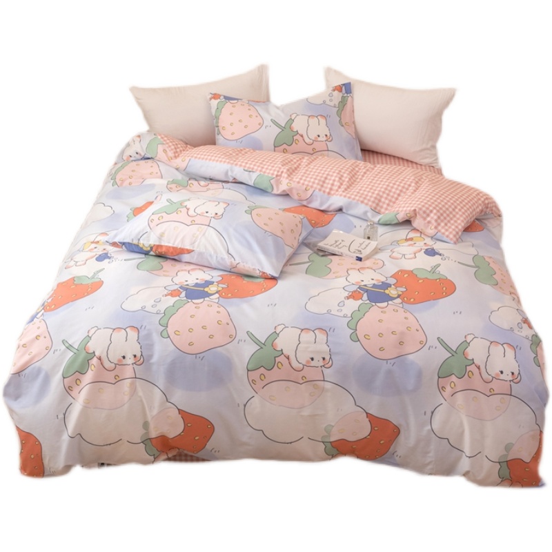 浅蓝草莓卡通单人全棉可爱小兔清新四件套纯棉被套床单枕套件1.5m