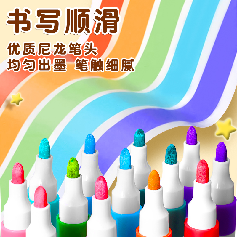 小学生美术专用丙烯马克笔幼儿园儿童彩笔水彩笔可水洗彩色笔24色画画笔丙烯笔炳烯36水性48笔芯