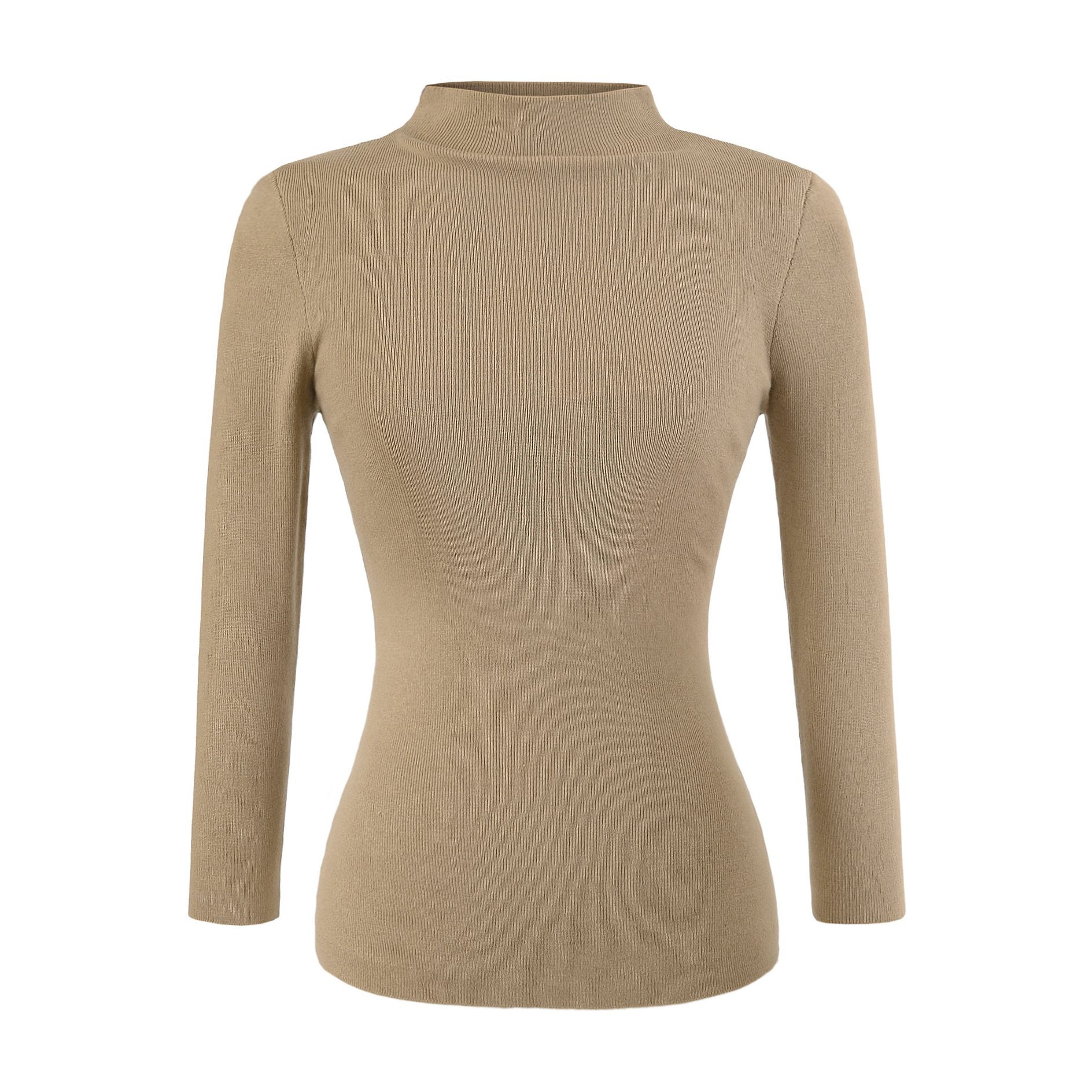 性感收腰七分袖半高领针织衫女