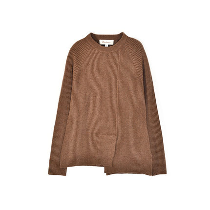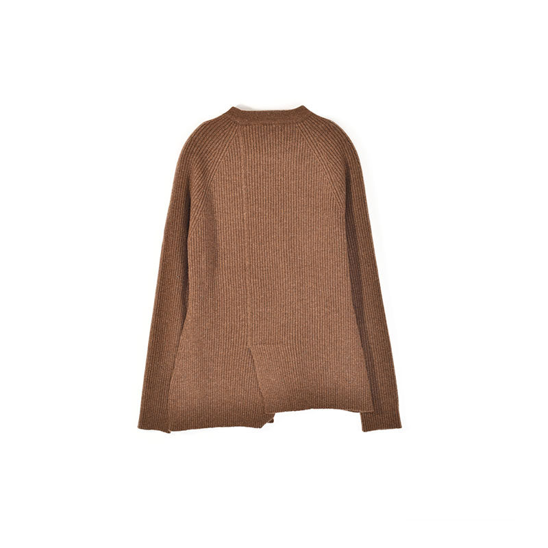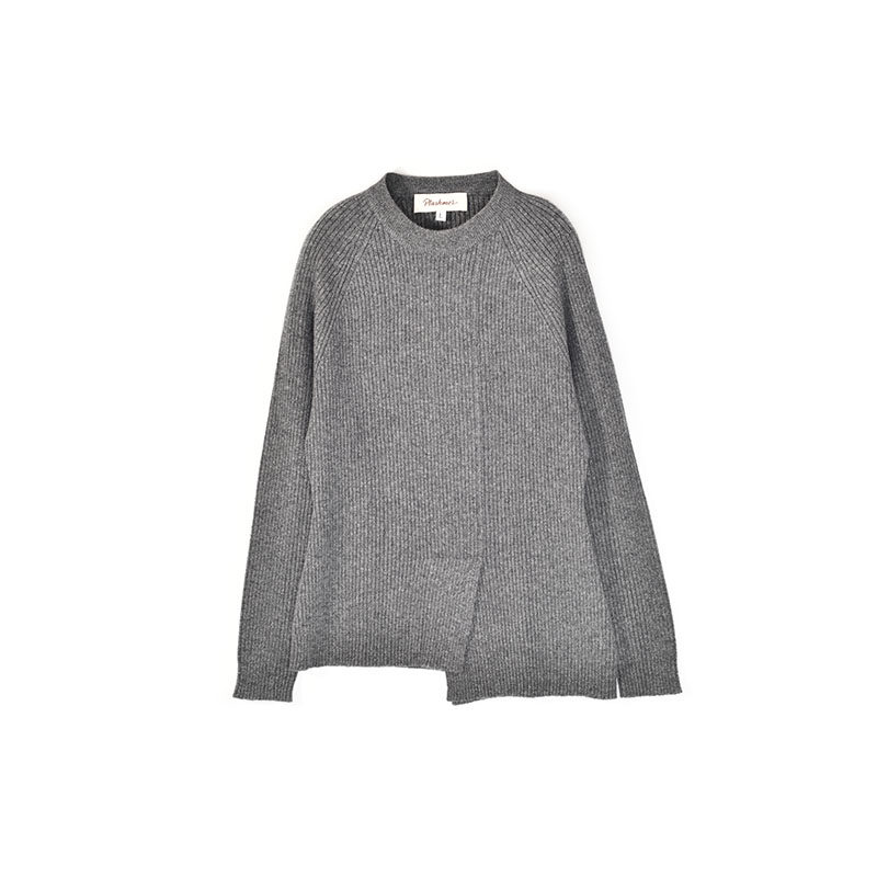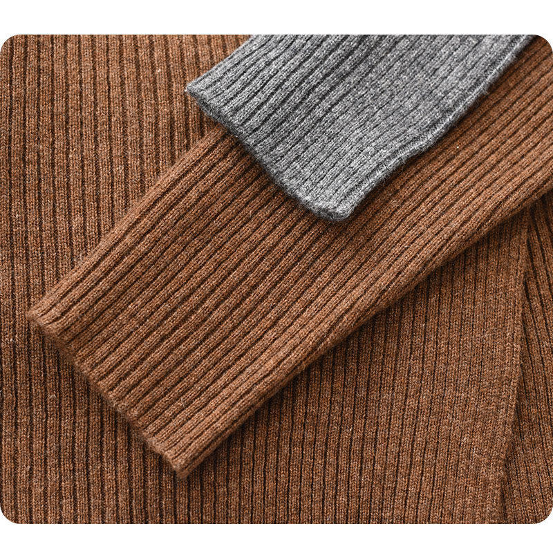 秋冬新针织抽条不规则拼接羊绒咖灰色百搭套头打底衫