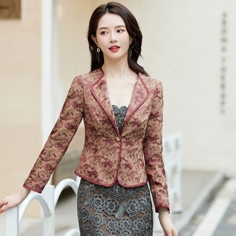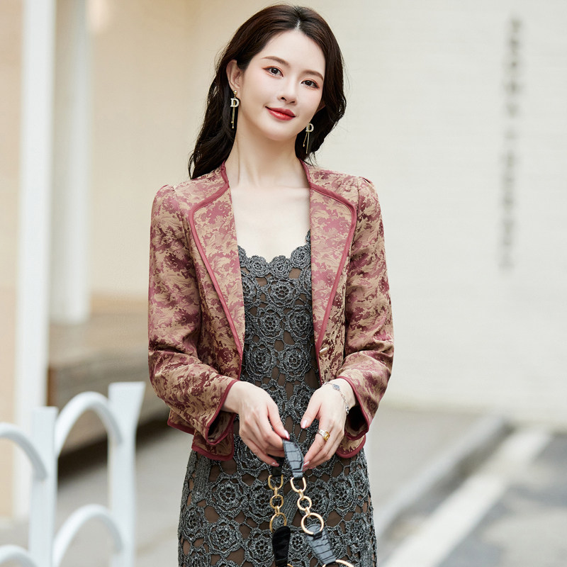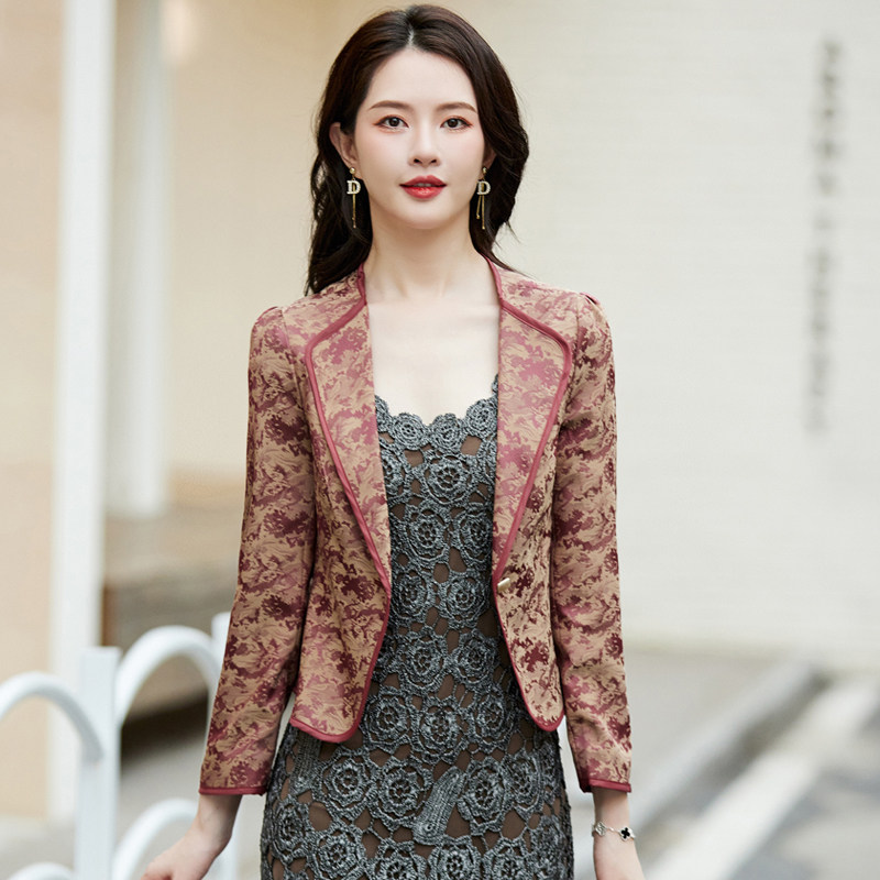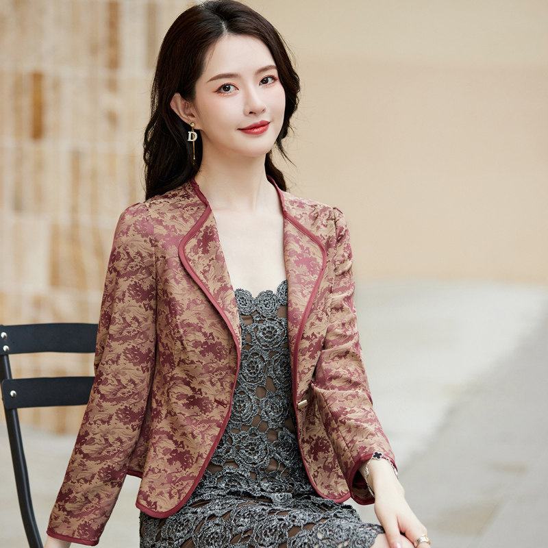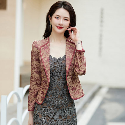 休闲印花西装外套女2026春季新款修身显瘦短款小西服旗袍裙子外搭