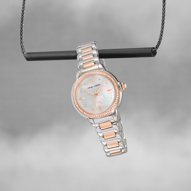 阿玛尼手表女高级经典轻奢镶钻贝母时尚石英女表官方正品AR11569