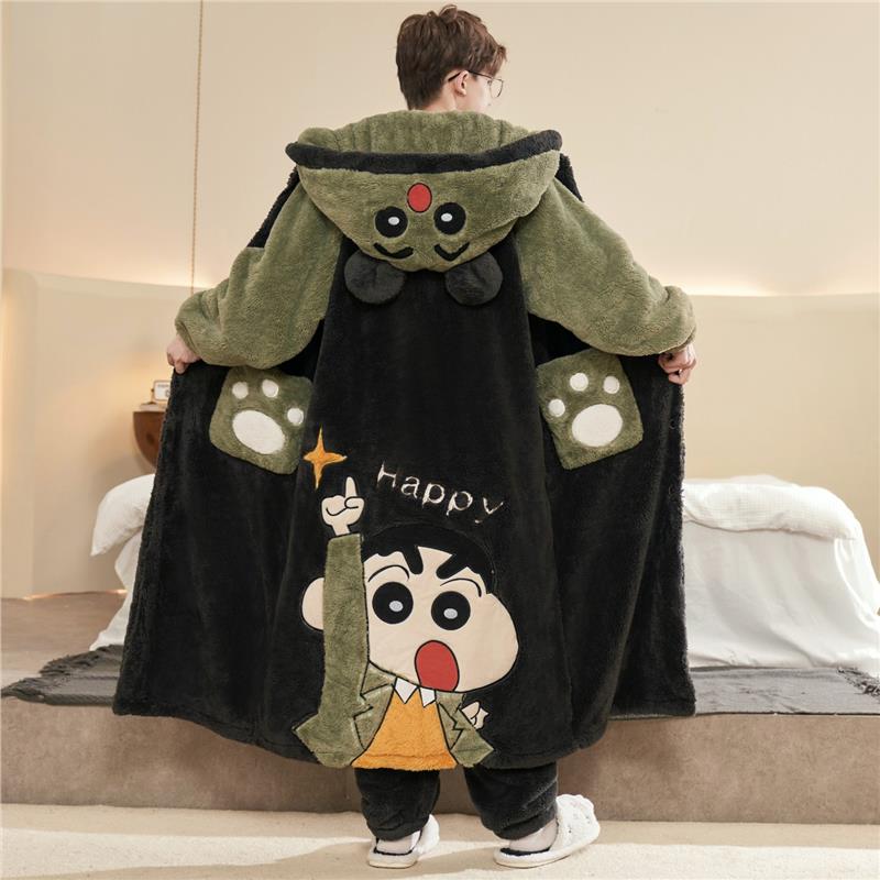 冬季加绒加厚珊瑚绒男士睡衣男款睡袍青少年学生卡通家居服秋冬款