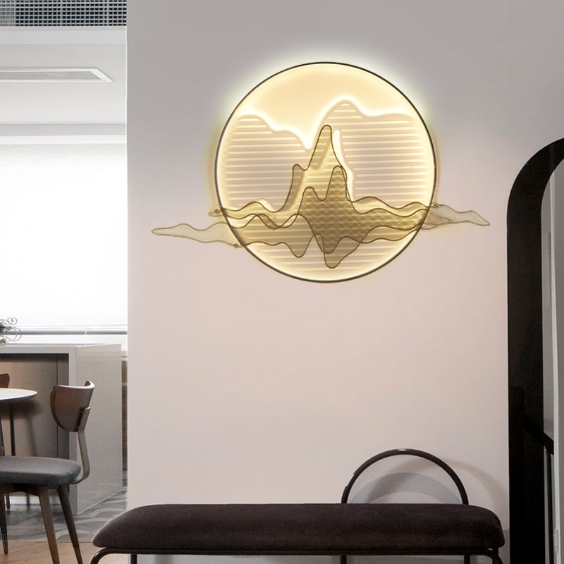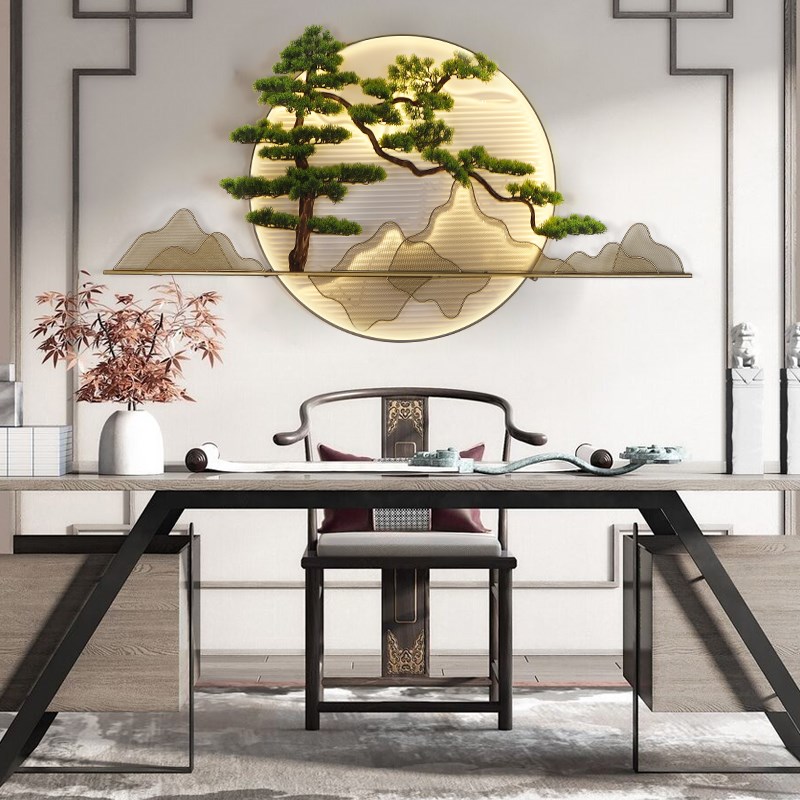 新中式玄关装饰画圆形3rd立体迎客松走廊过道壁灯高档客厅茶室挂