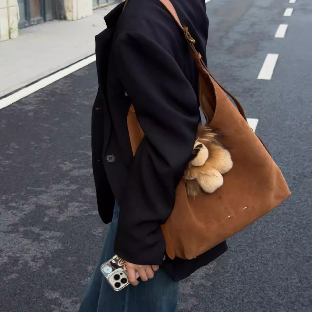 小众麂皮hobo腋下包女秋冬高级感通勤托特包大容量百搭真皮饺子包