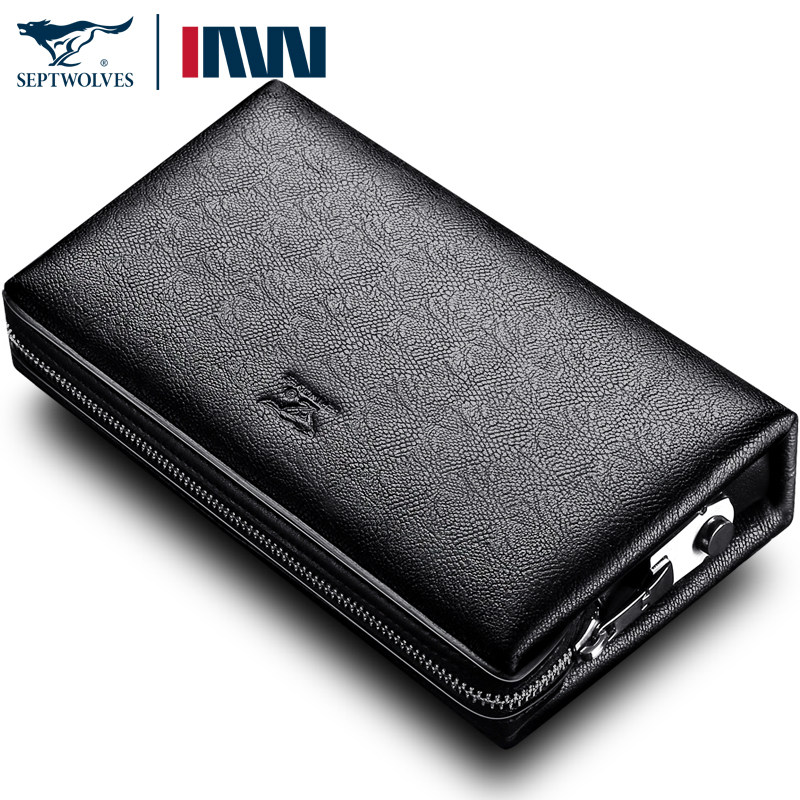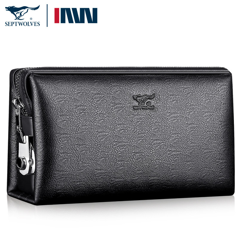 七匹狼男士手包真皮软皮手拿包男大容量头层牛皮手抓包密码锁男包