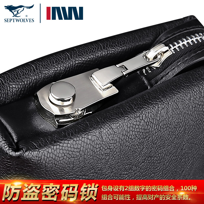 男士密码锁七匹狼手包头层牛皮