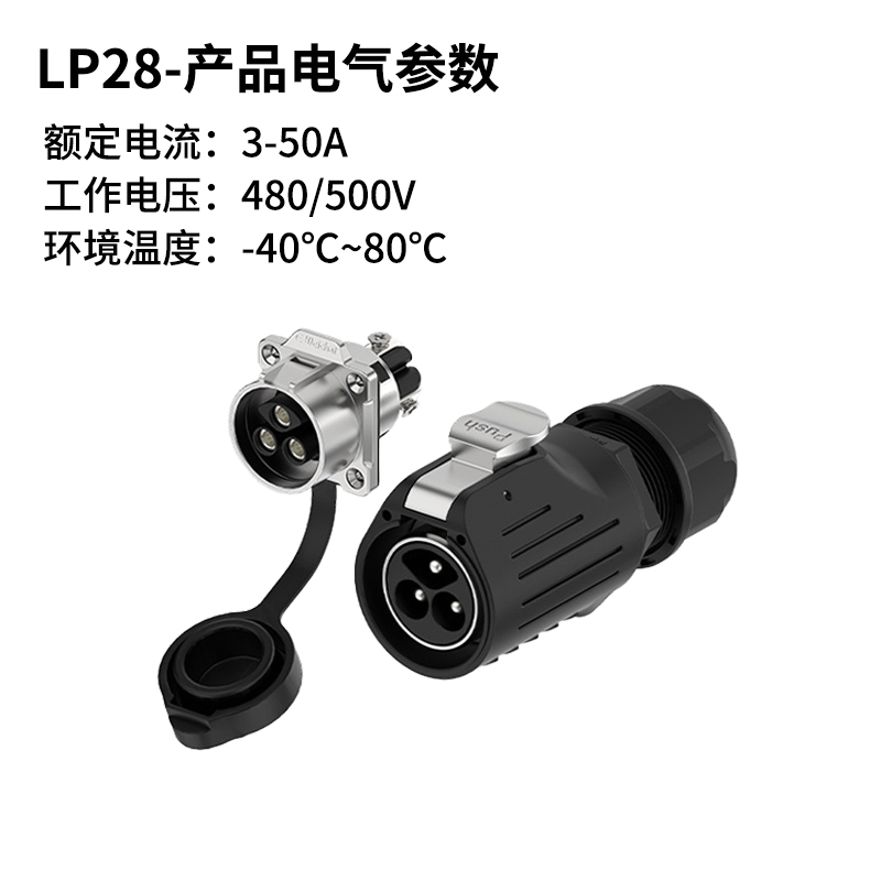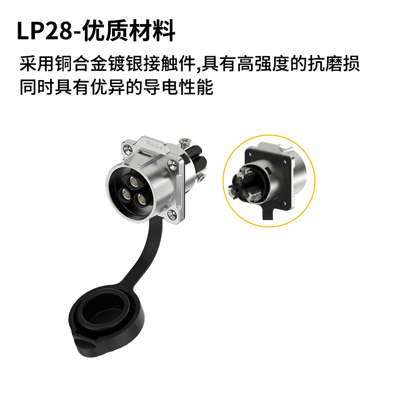 LP28公母对接插头2/3芯法兰金属款锁螺丝大功率航空插头连接器