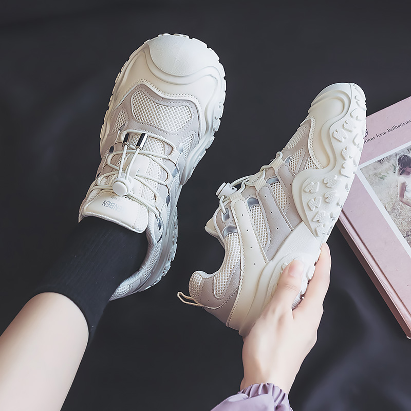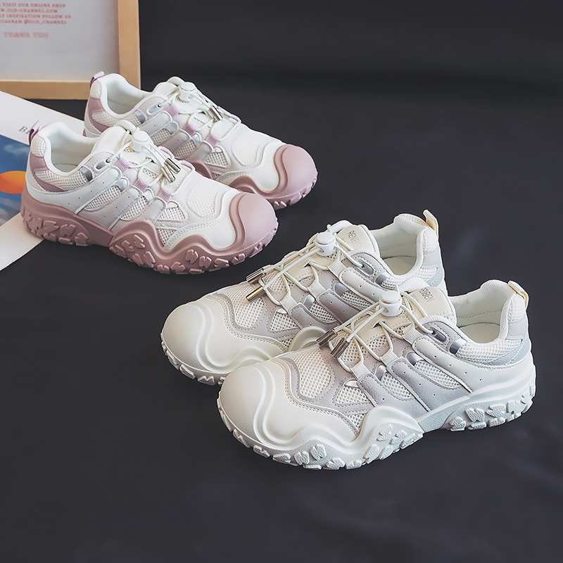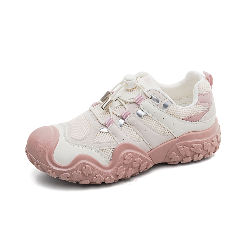 人本网面小白鞋女2025夏新款镂空透气轻便跑步鞋厚底休闲登山鞋