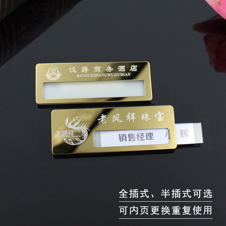 不锈钢胸牌定做工号牌金属可更换姓名制作胸卡酒店员工牌订制