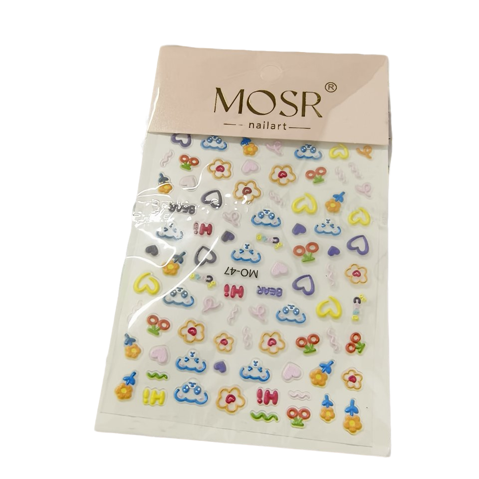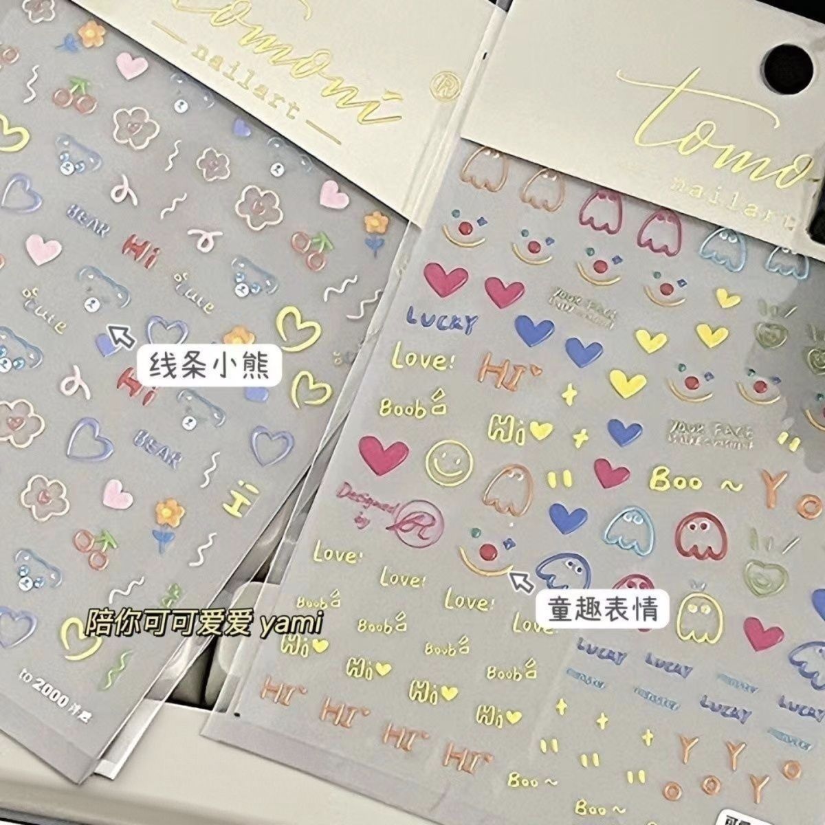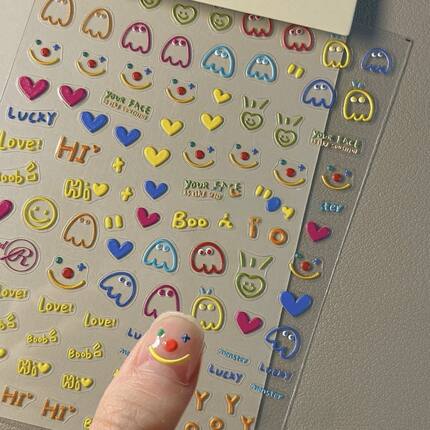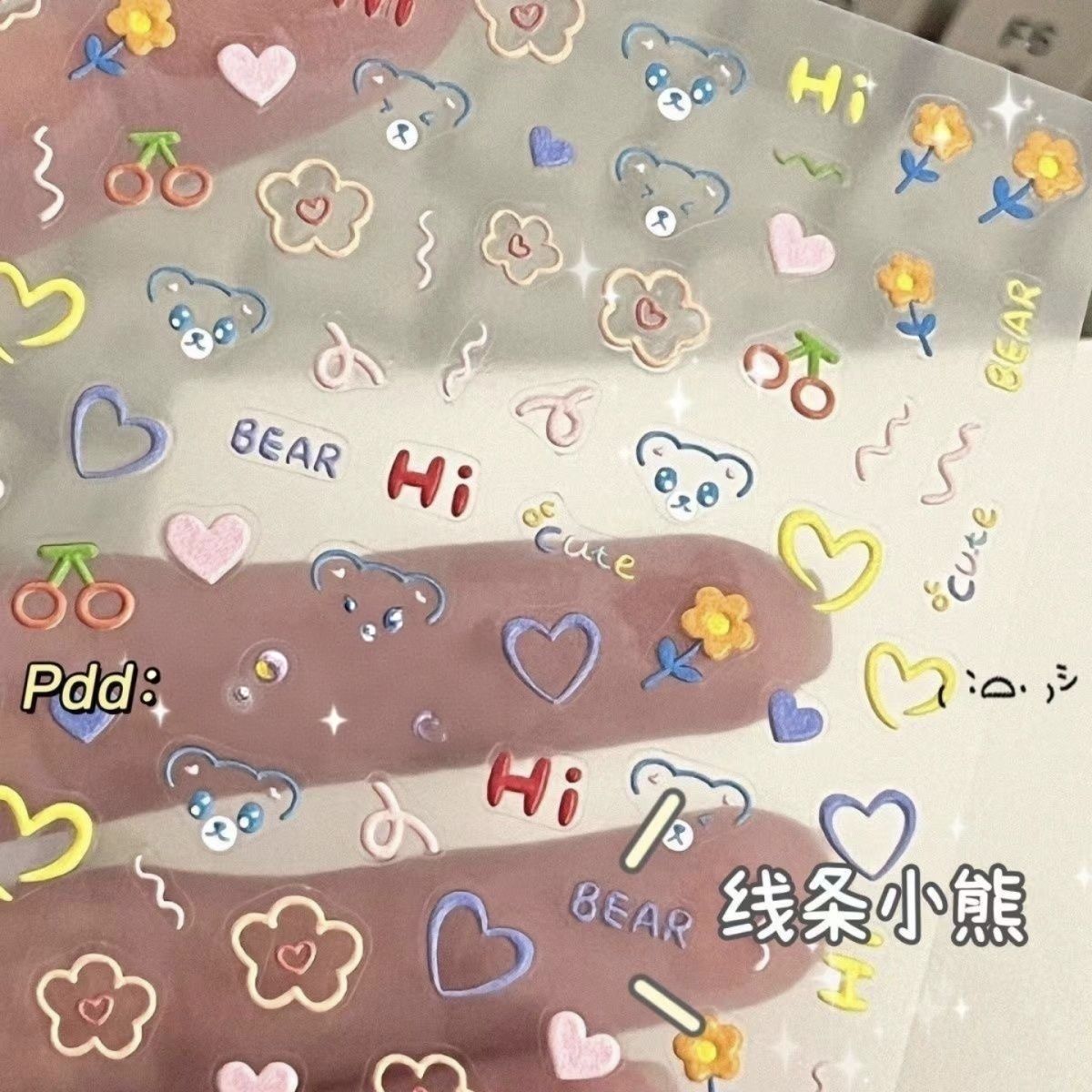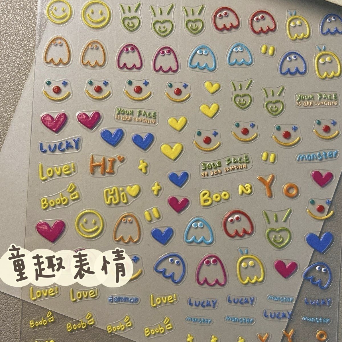多巴胺美甲饰品童趣表情美甲贴纸高颜值可爱小熊涂鸦浮雕立体贴纸