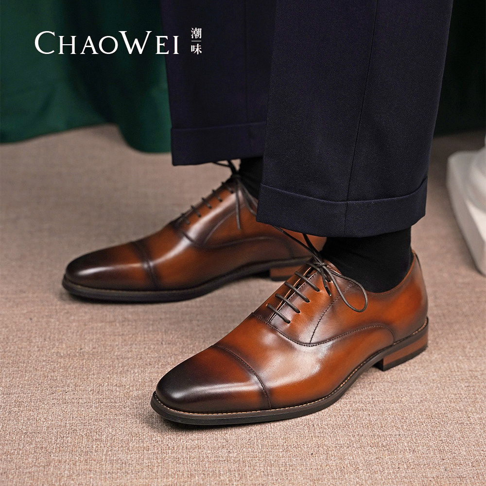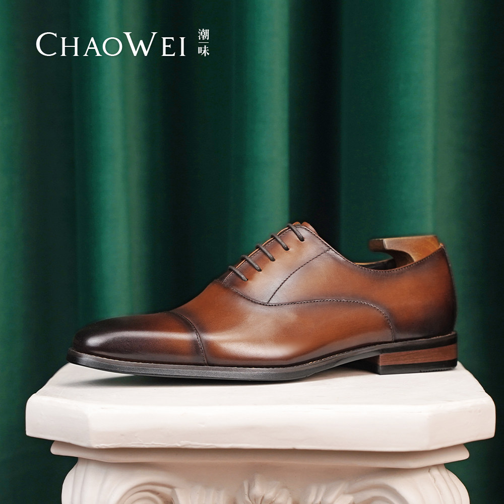 三接头皮鞋男黑色商务正装牛津鞋手工牛皮英伦休闲男鞋结婚鞋尖头