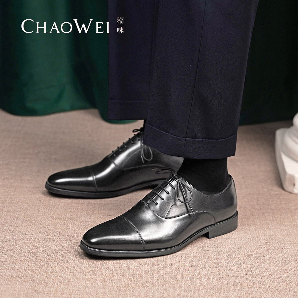 三接头皮鞋男黑色牛皮