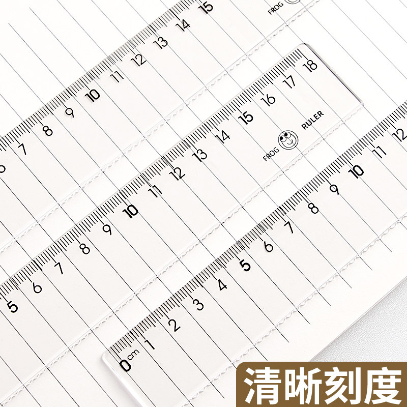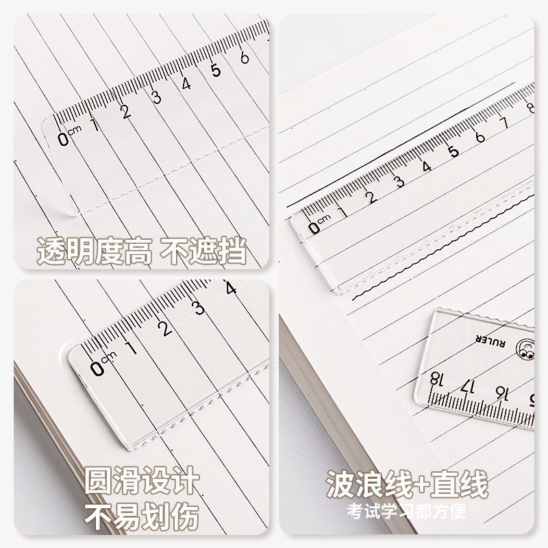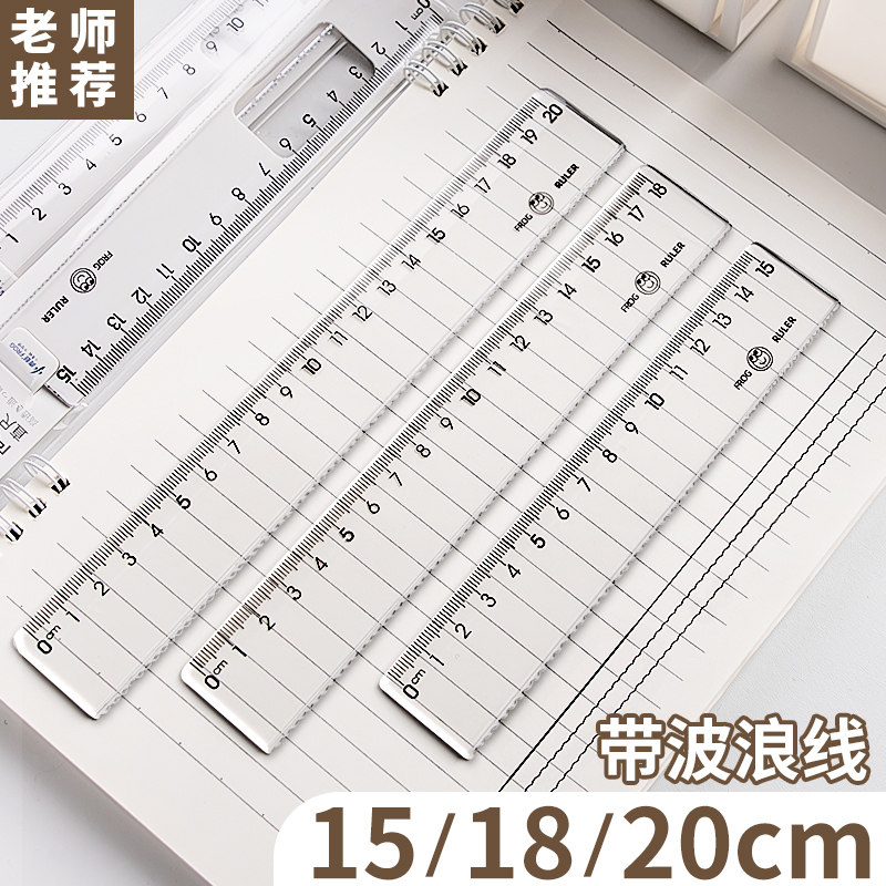 透明尺子大数字小学生多功能初中生用品直尺15/18/20cm测量绘图数学考试儿童学习文具一年级塑料格尺带波浪线