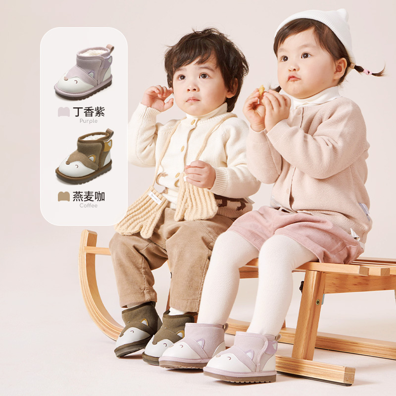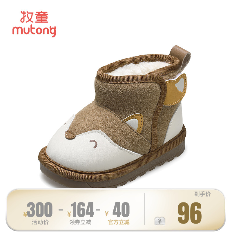 牧童宝宝雪地靴冬季女童软底加绒婴幼儿卡通大棉鞋防寒保暖男童鞋