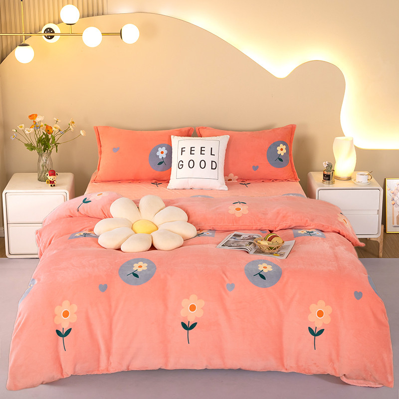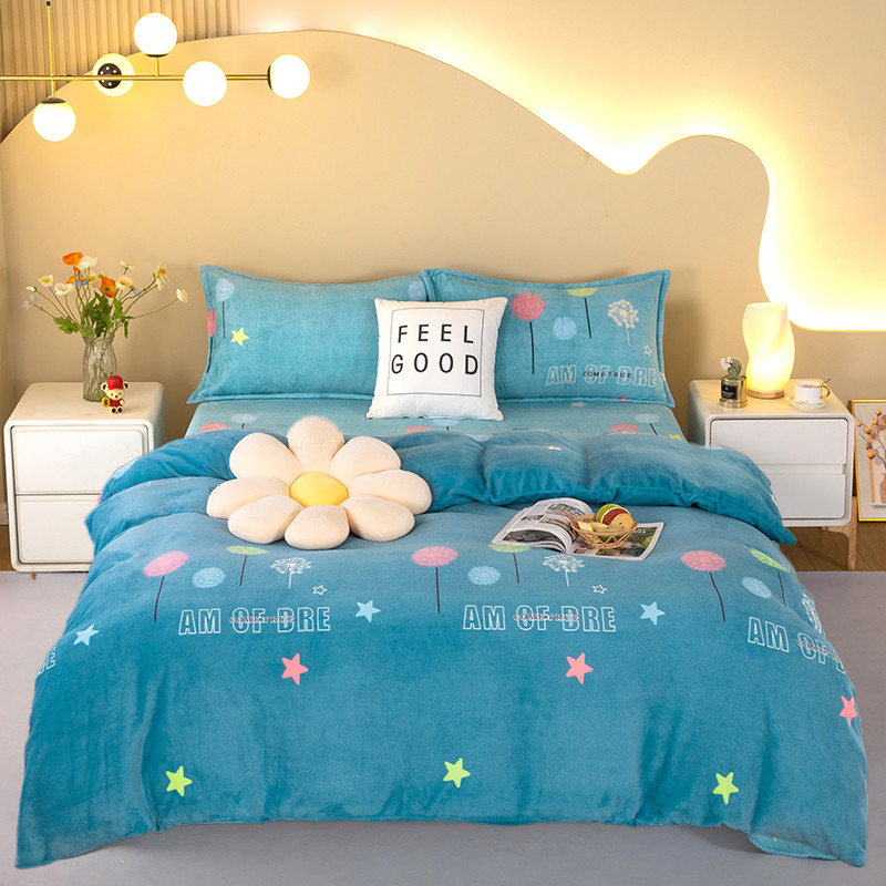 冬季牛奶绒床上四件套加厚冬天加绒被套三件套双面珊瑚法兰绒床单