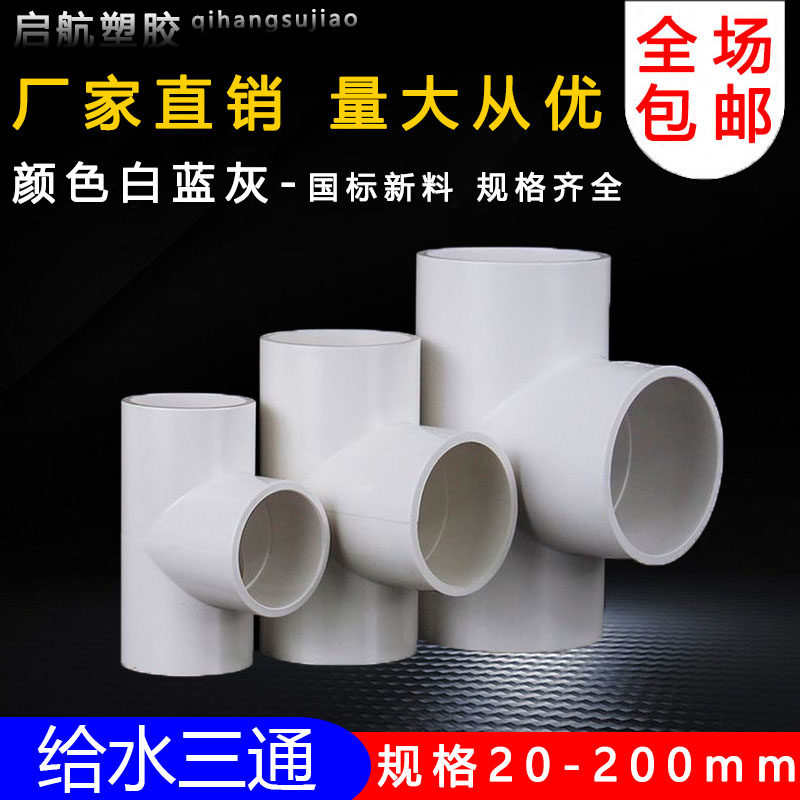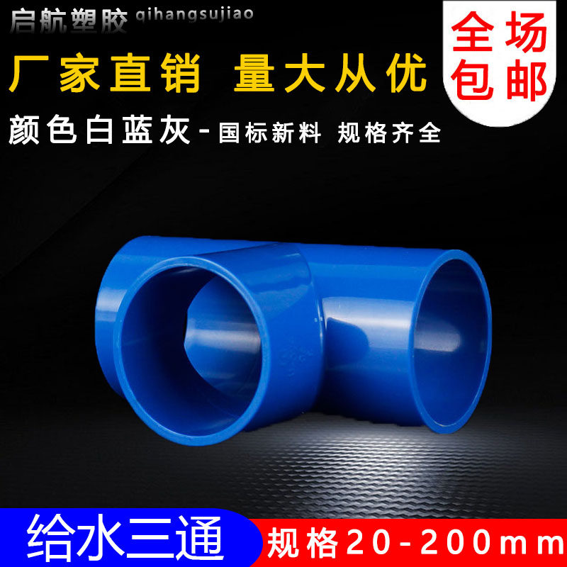 PVC三通 UPVC胶粘给水管三通接头塑料水管管件配件三叉白蓝色灰色