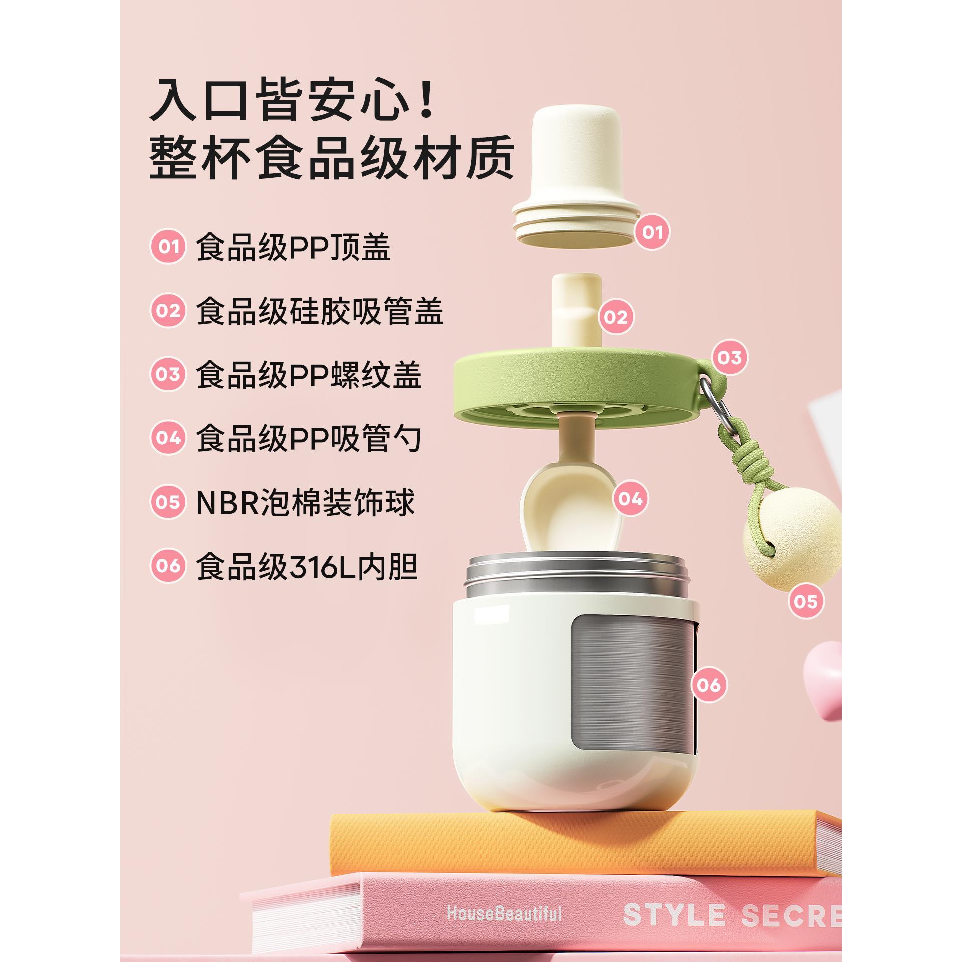 物生物早餐杯带盖勺专用酸奶燕麦豆浆喝粥便携保温冲泡吸管水杯子