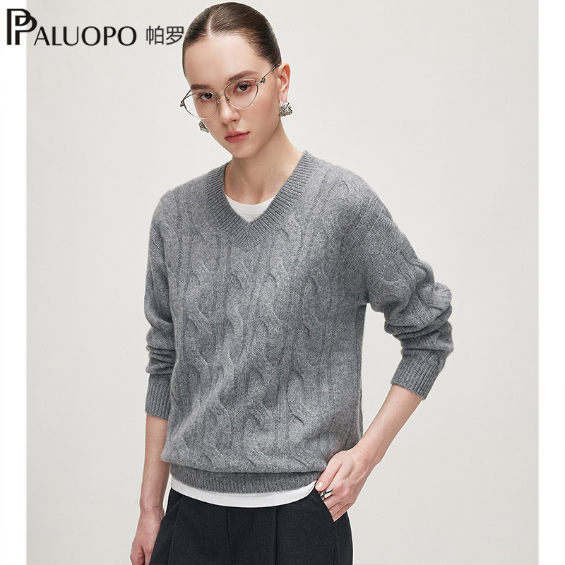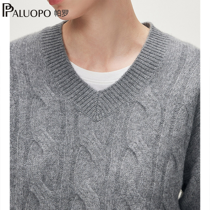 PALUOPO/帕罗V领纯山羊绒衫