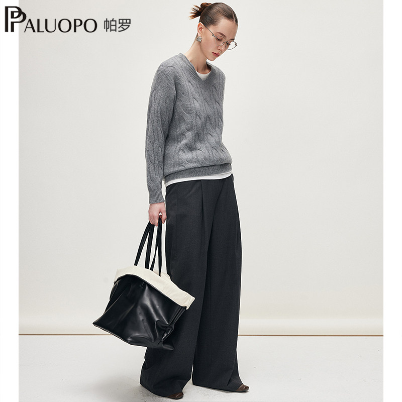 PALUOPO/帕罗【商场同款RED红标】25冬季新款V领纯山羊绒衫女毛衣
