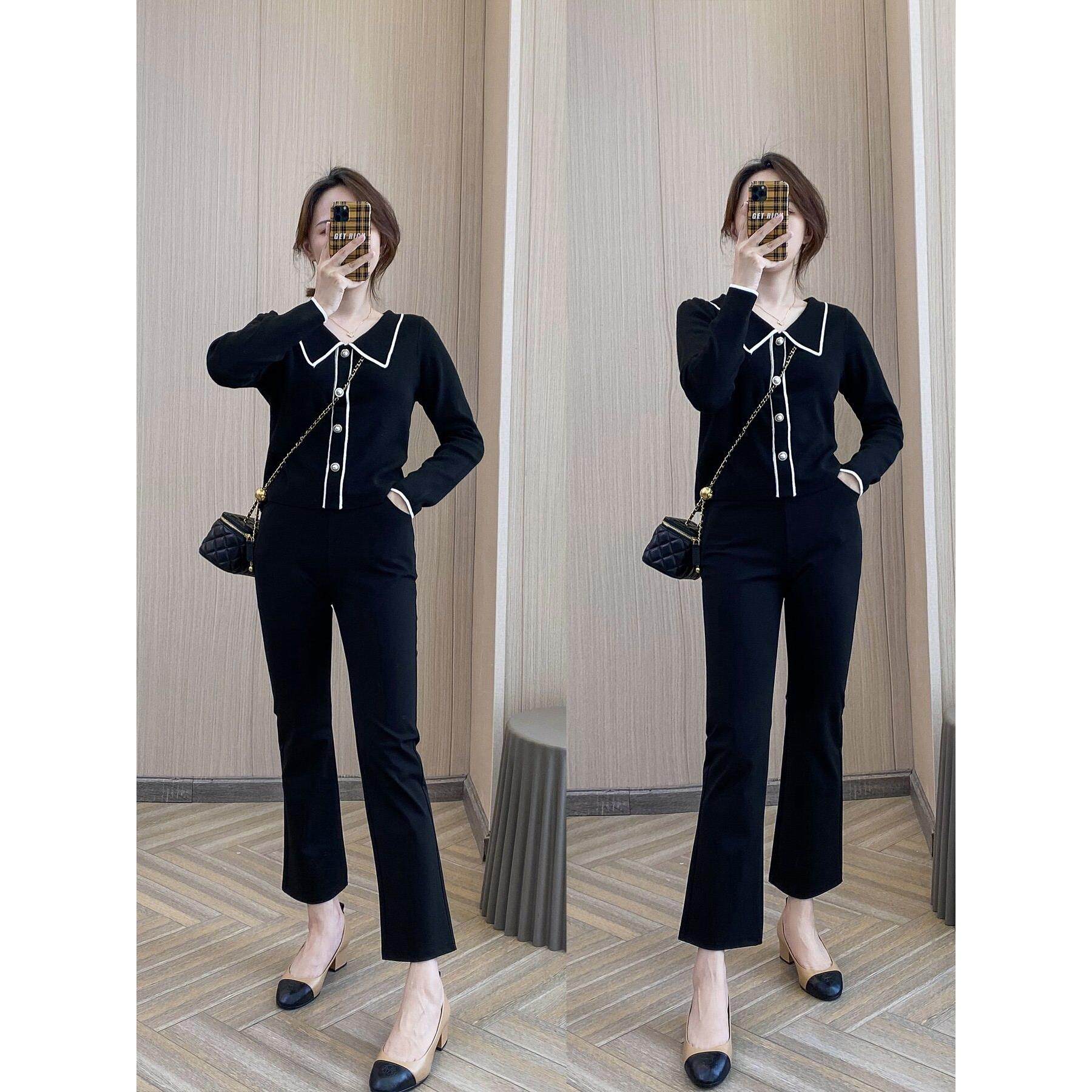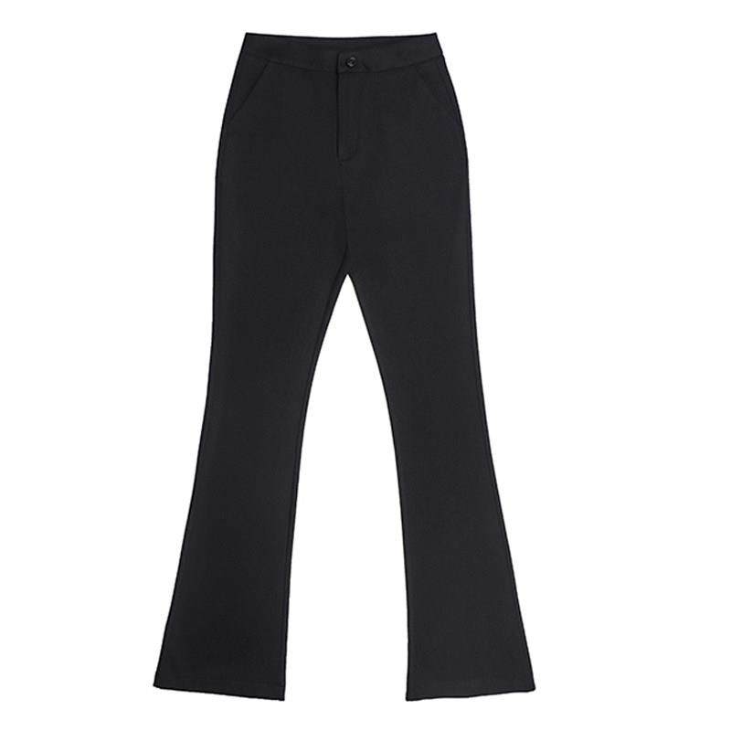 黑色微喇叭裤女春夏九分松紧高腰垂感宽松直筒职业西裤八分休闲裤