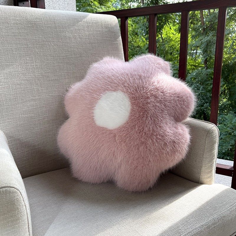 仿狐狸毛可爱太阳花抱枕长毛绒沙发靠垫女生花瓣花朵奢华高端靠枕