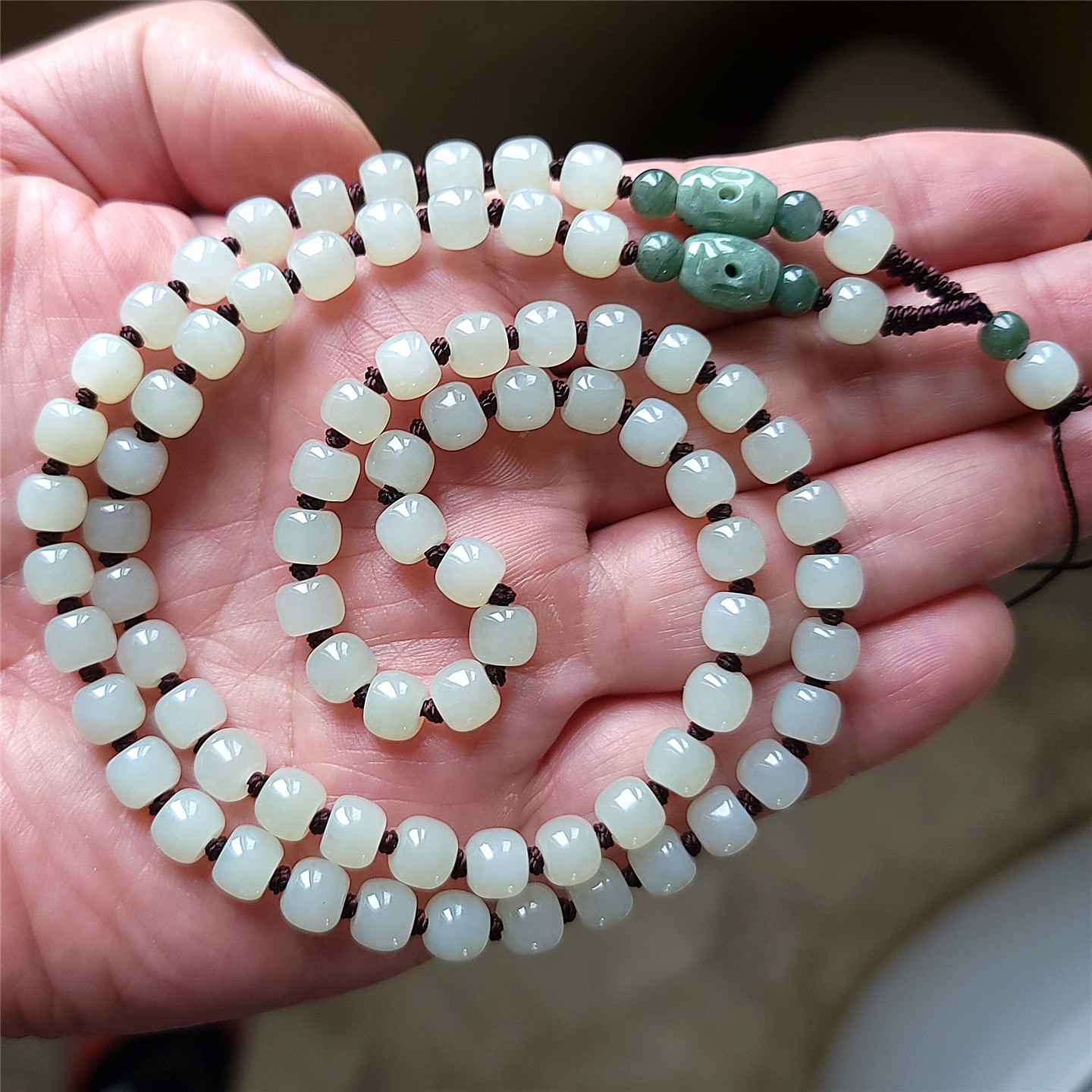 大锦和田玉吊坠项链男款手工编织高档绿色翡翠民族风挂绳情侣珠链