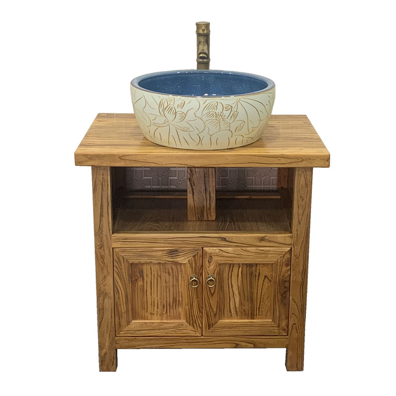实木落地彷古小户型台上盆覆古老榆木中式浴室柜组合洗簌台洗脸柜