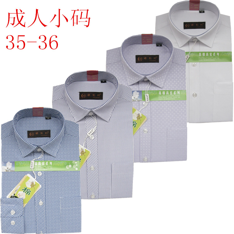 雅格玛特小码小号小版矮个子男士长袖格子衬衫 正装男装衬衣35 36
