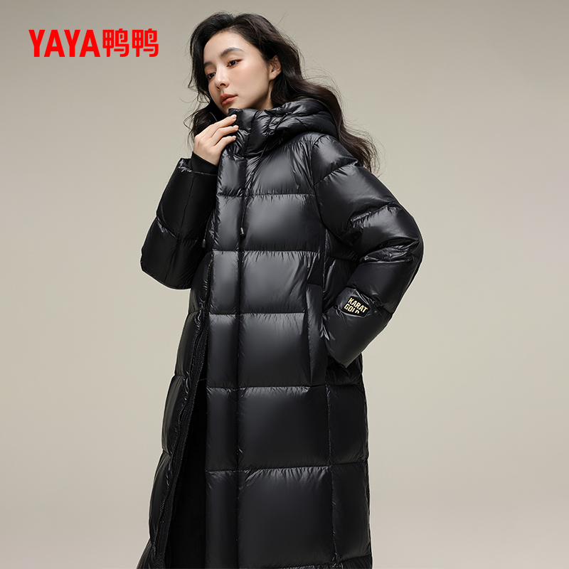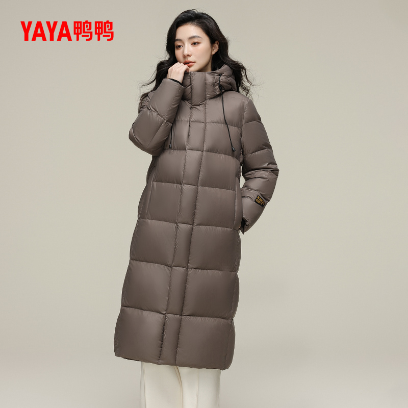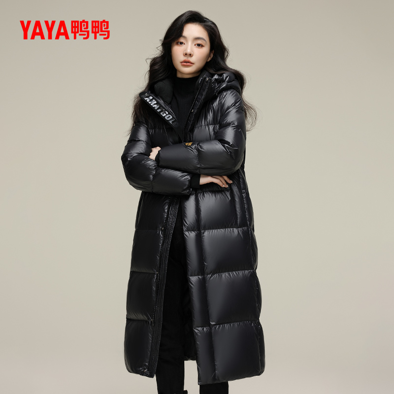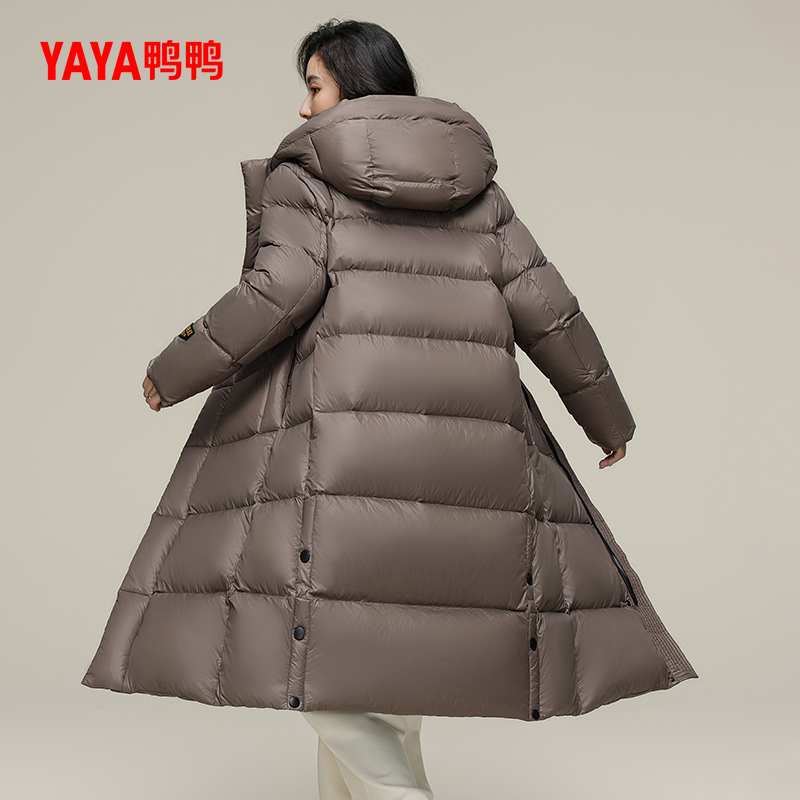 鸭鸭羽绒服女2024年90鹅绒新品冬季长款加厚连帽保暖外套J