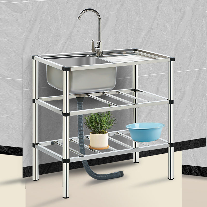 厨房不锈钢水槽带支架洗碗槽洗手盆水池单槽出租房简易洗菜盆架子