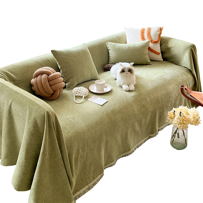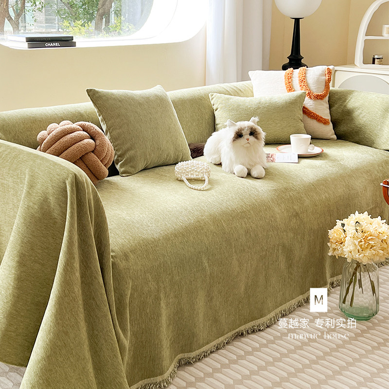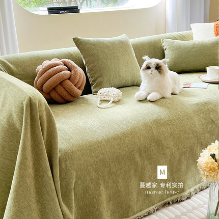蔓越家 ins中古绿一片式全包沙发巾全盖沙发套罩雪尼尔盖布巾
