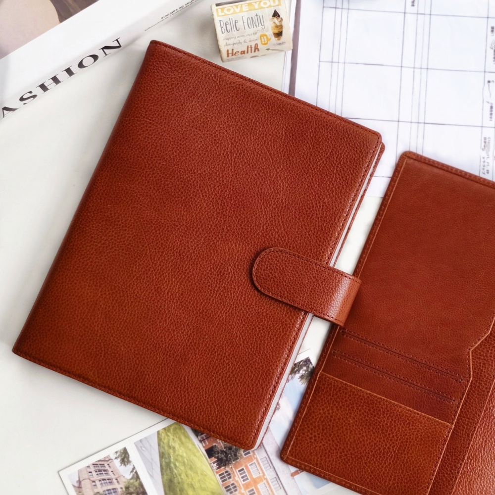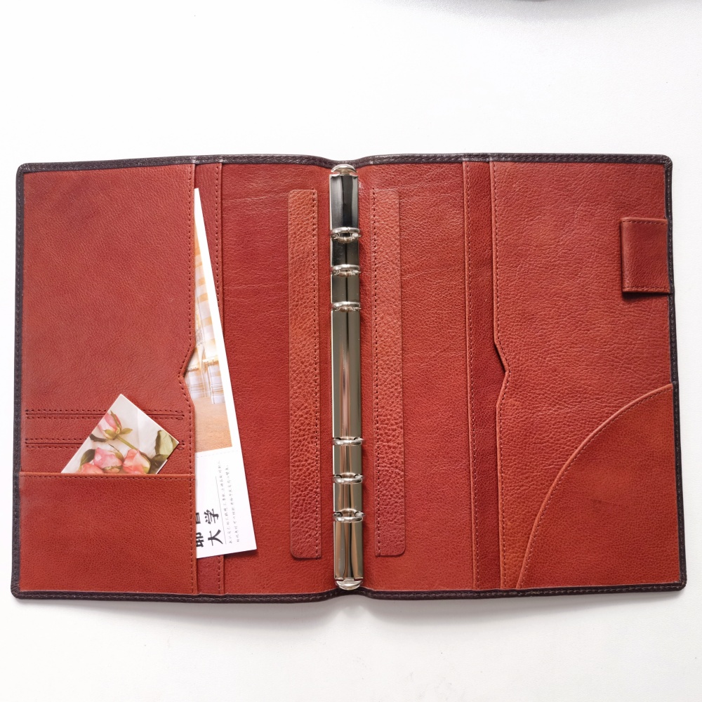 轻奢A5牛皮笔记本轻薄款 真皮商务办公记事6孔小环活页本手帐20孔