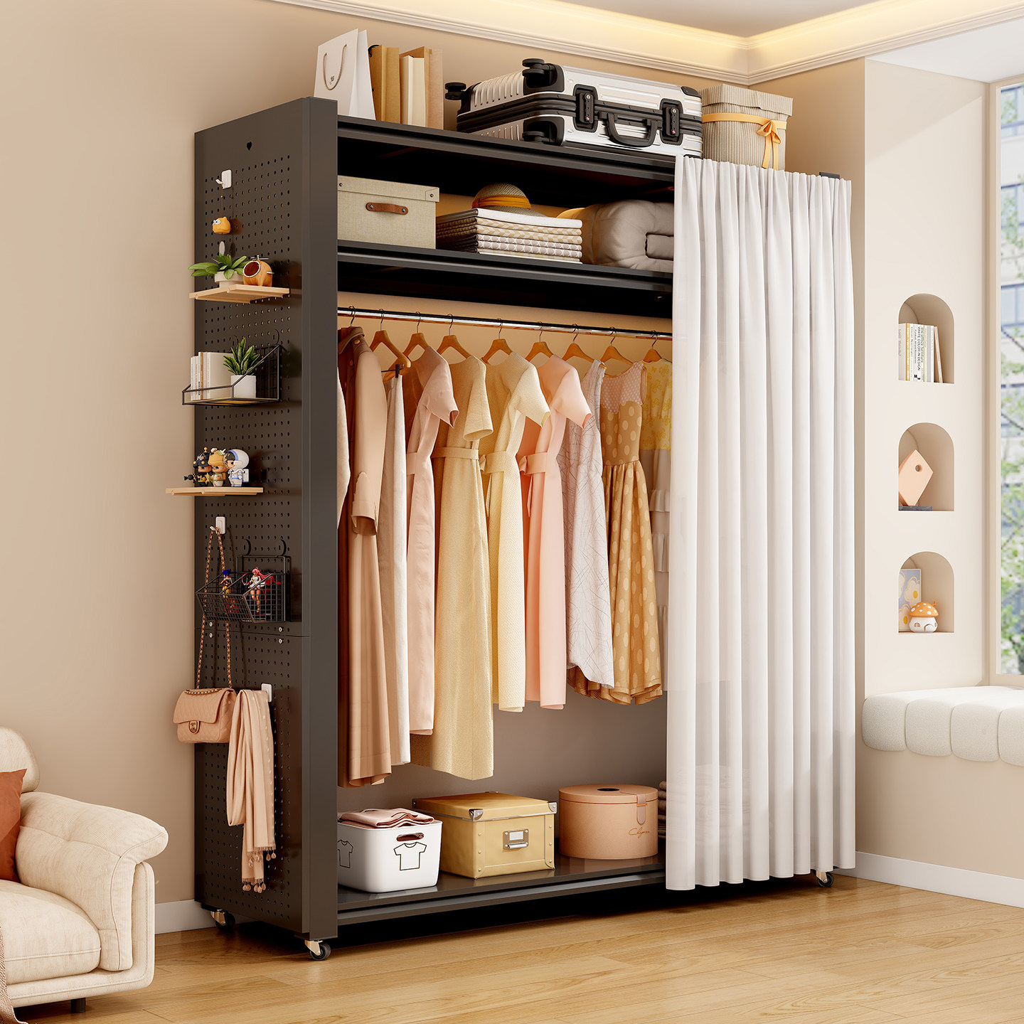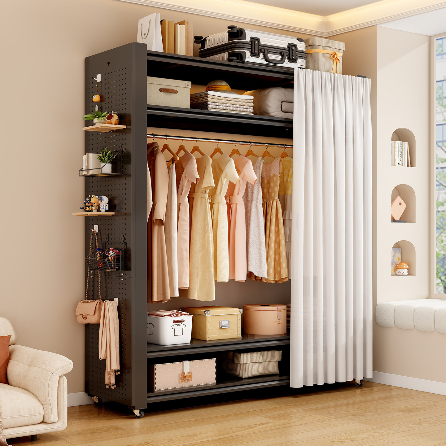 金属衣柜家用卧室简易组装洞洞板衣帽架出租房用开放式货架收纳柜