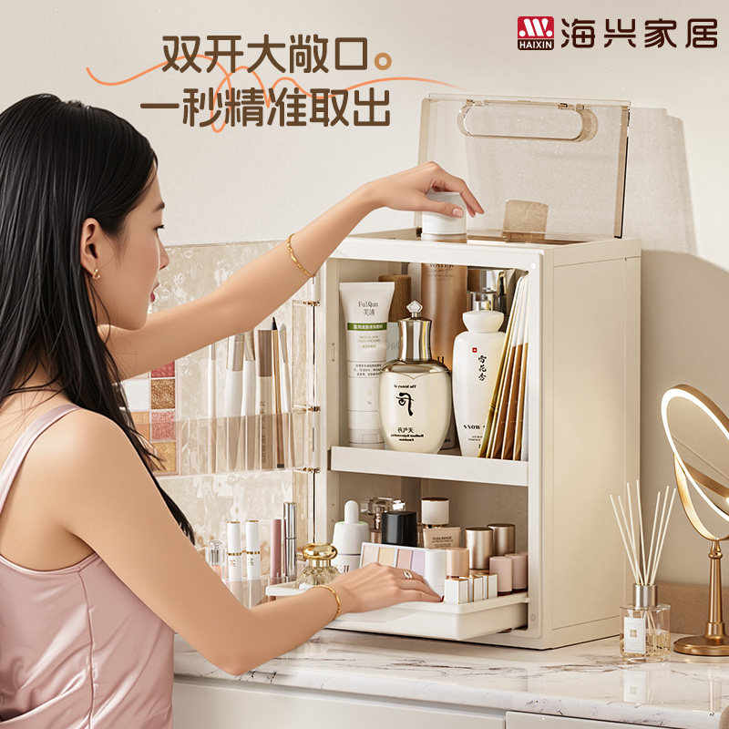 化妆品收纳盒防尘整理盒桌面梳妆台口红护肤品置物架高级感化妆箱
