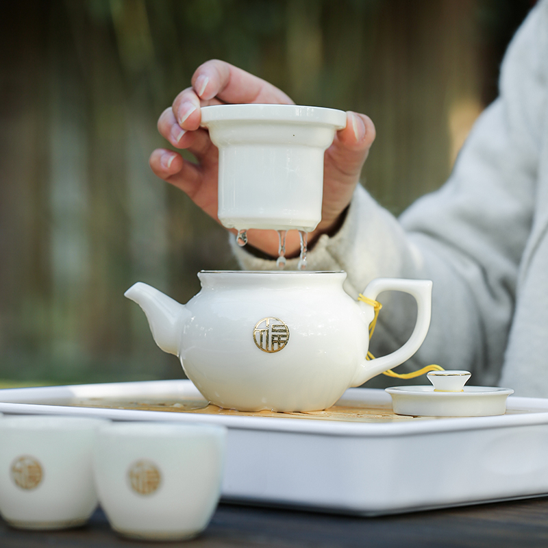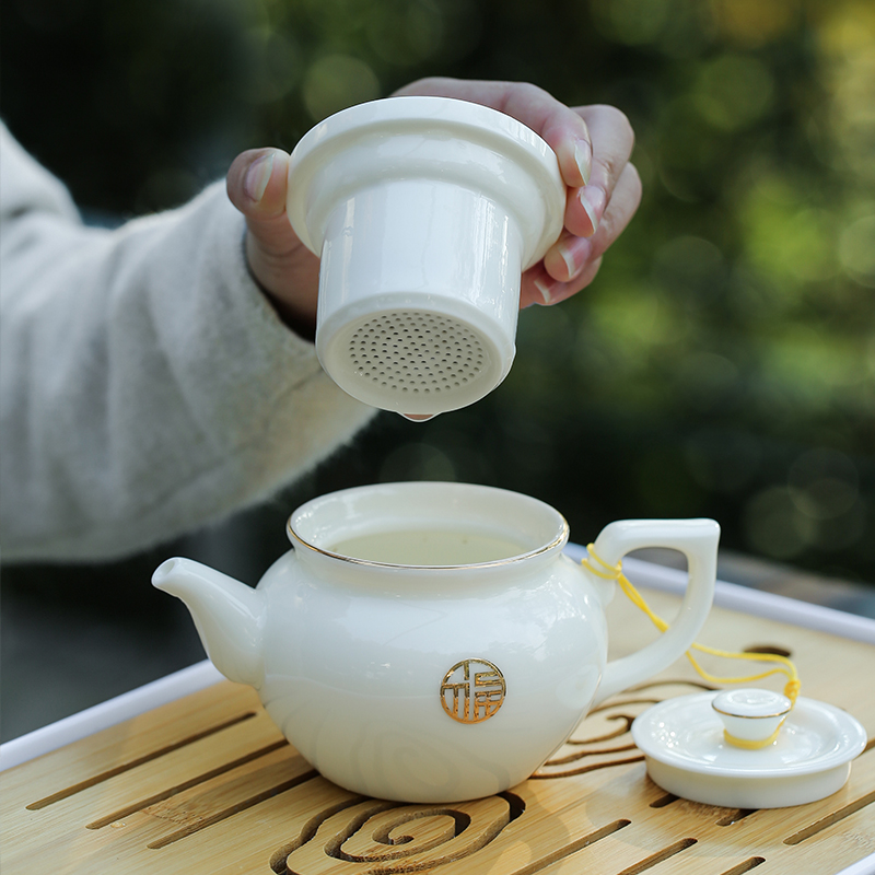 陶瓷过滤茶壶单壶白瓷小号泡茶器带网隔内胆家用功夫茶具杯子套装