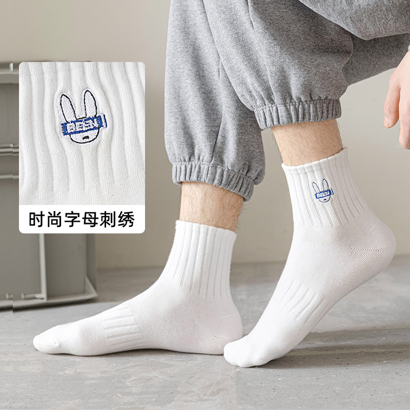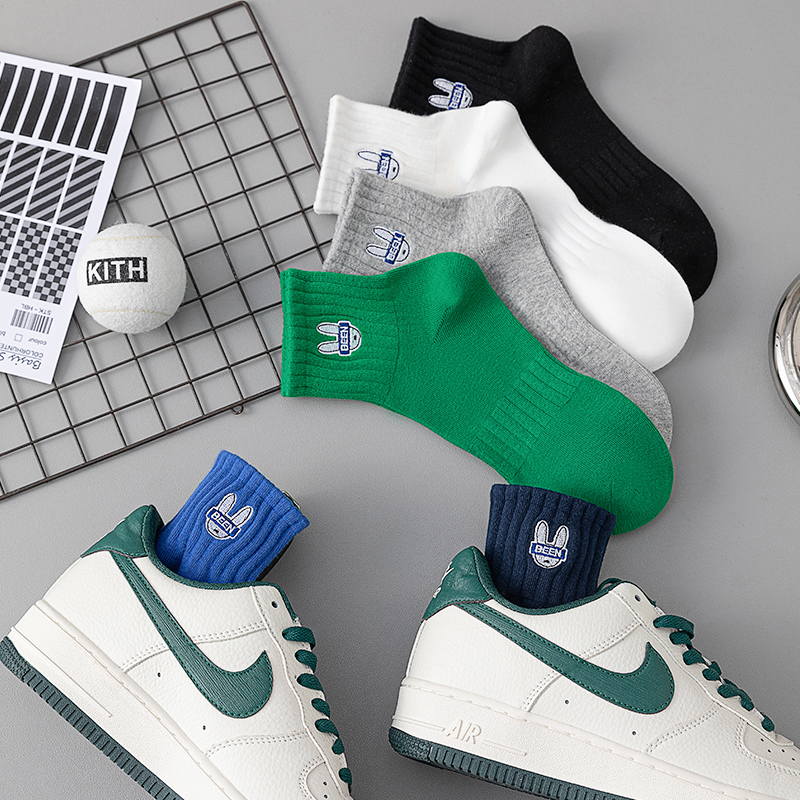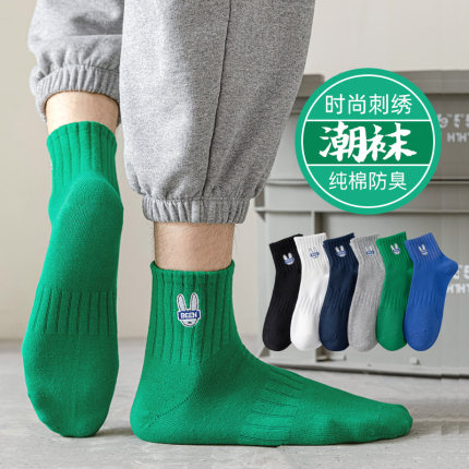 袜子男青少年夏季春夏纯棉防臭短袜男生可爱刺绣运动吸汗男童大码