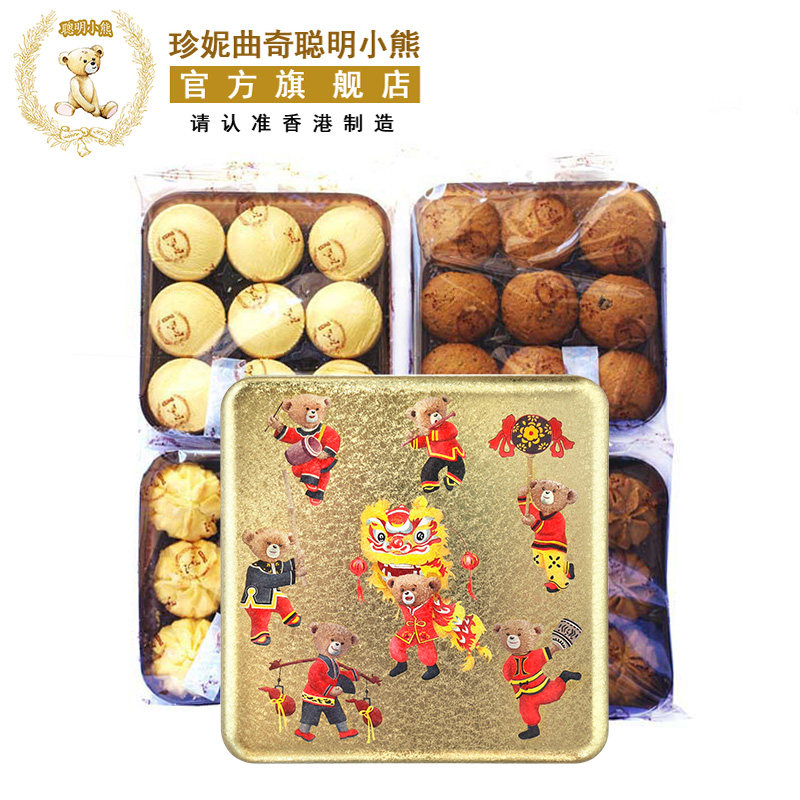 香港珍妮曲奇聪明小熊曲奇手工饼干四味4mix礼盒装380g进口零食