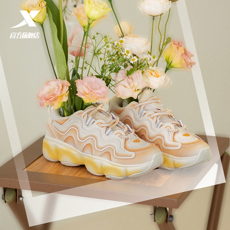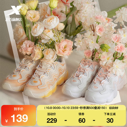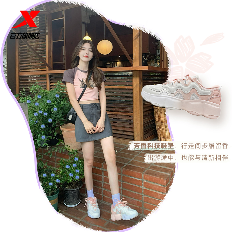 特步花瓣鞋休闲鞋秋季时尚百搭女鞋厚底增高轻便缓震运动鞋老爹鞋