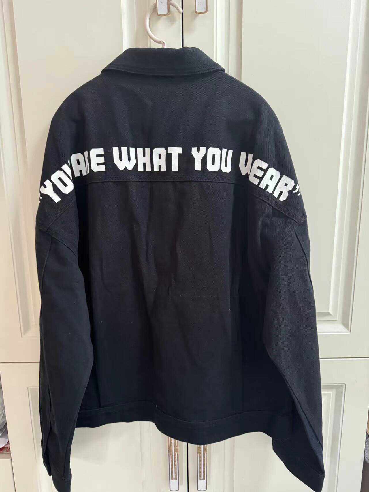 森马外套男秋季时尚工装风字母刺绣牛仔外套宽松纯棉黑色男装夹克