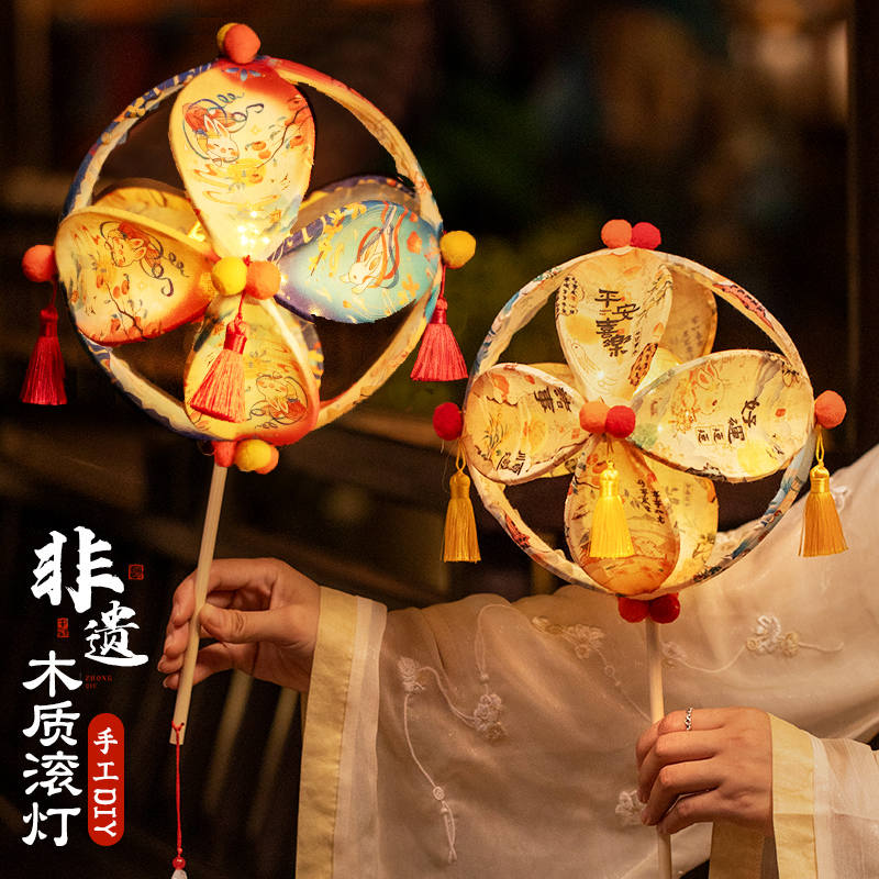 中秋节灯笼2025新款手工制作diy材料儿童手提花灯八月十五古风