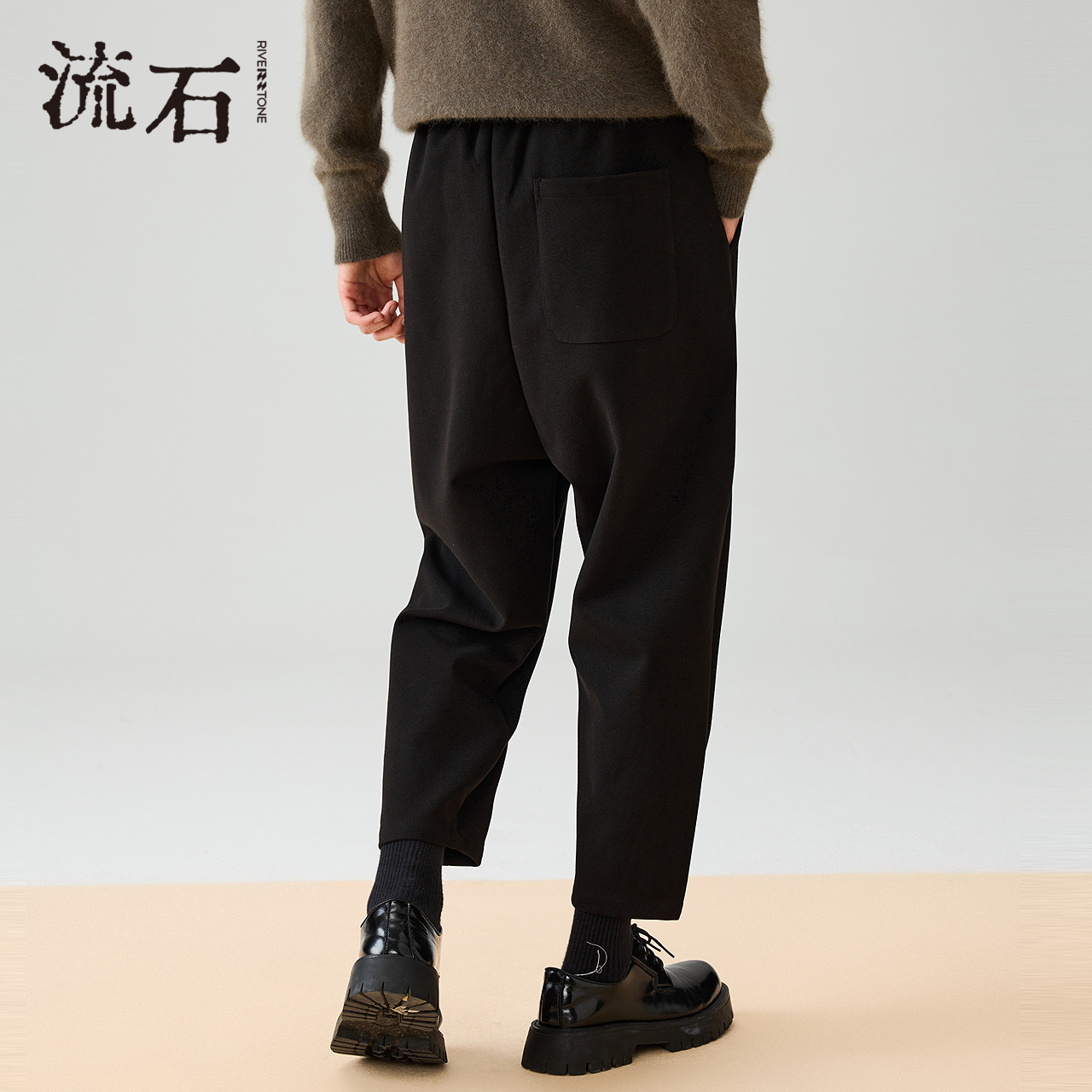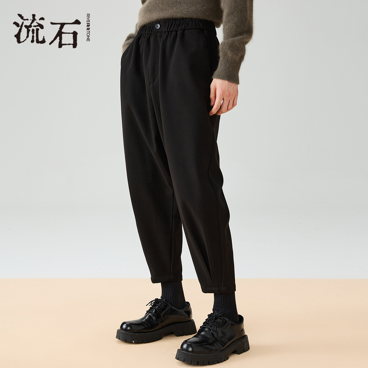 流石男装毛呢宽松哈伦休闲裤2025年冬季新款男士九分裤子加绒加厚