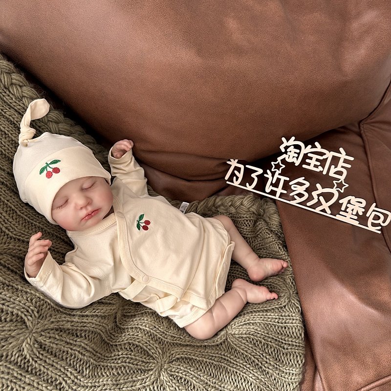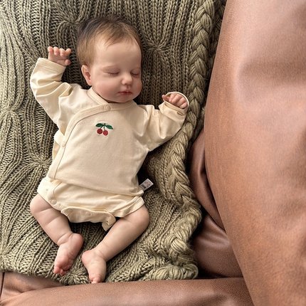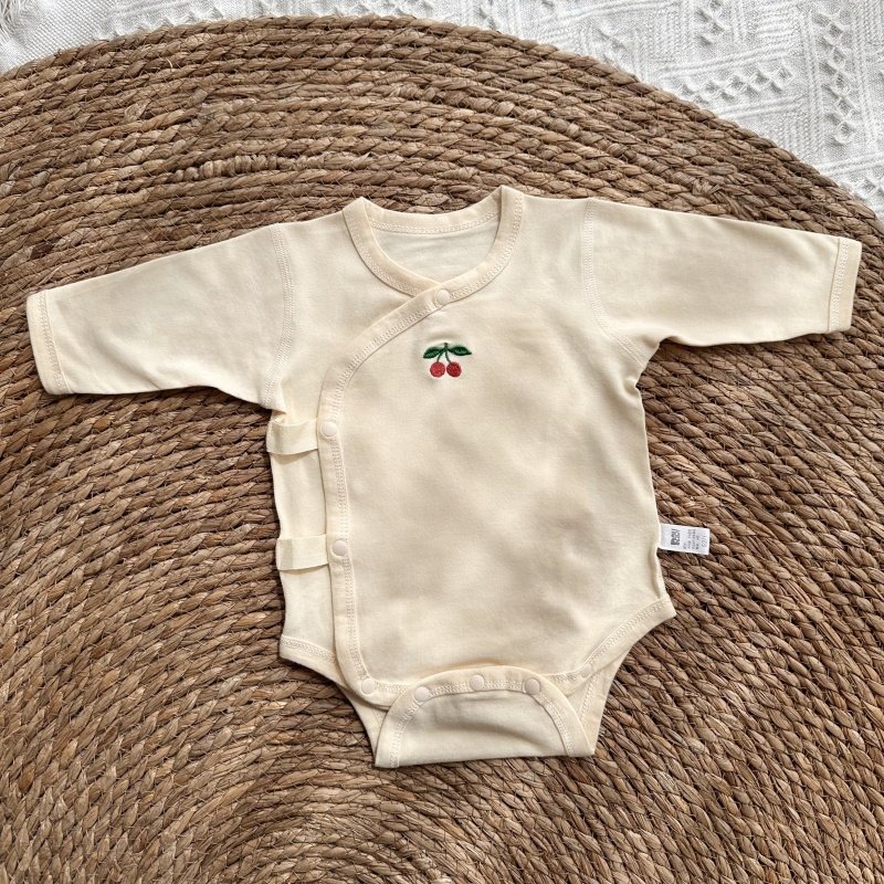 新生儿春夏款樱桃刺绣长袖包屁衣