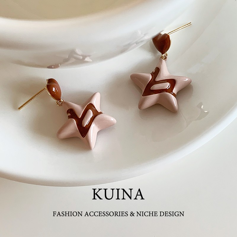 咖色五角星气质独特耳环新爆款高级感纯银针耳钉轻奢小众女士耳饰