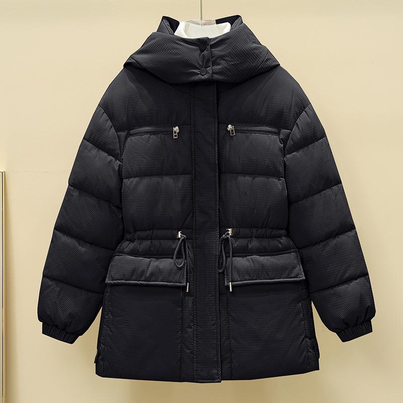 2025冬季新款女装千鸟格子羽绒棉服女中长款连帽宽松加厚保暖外套
