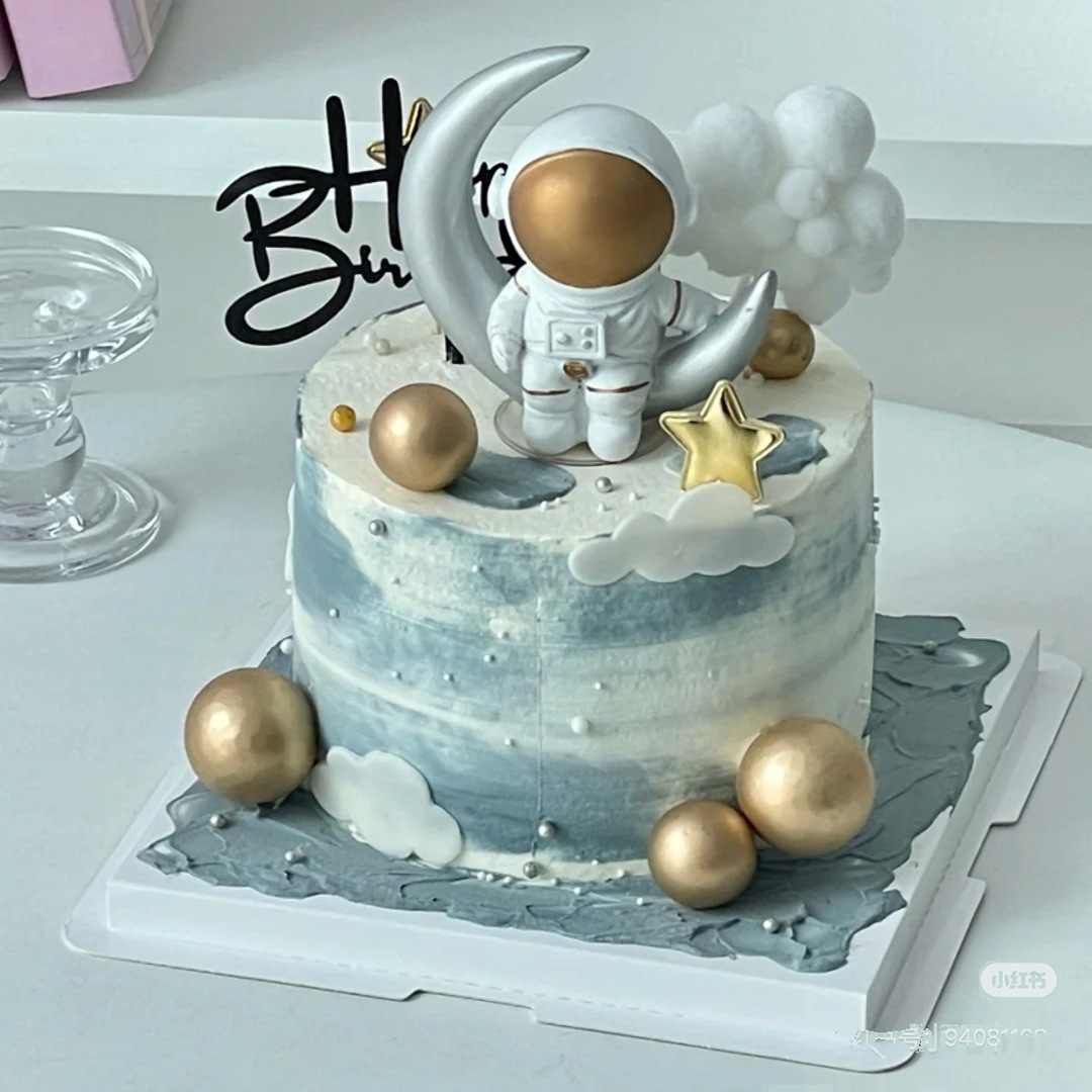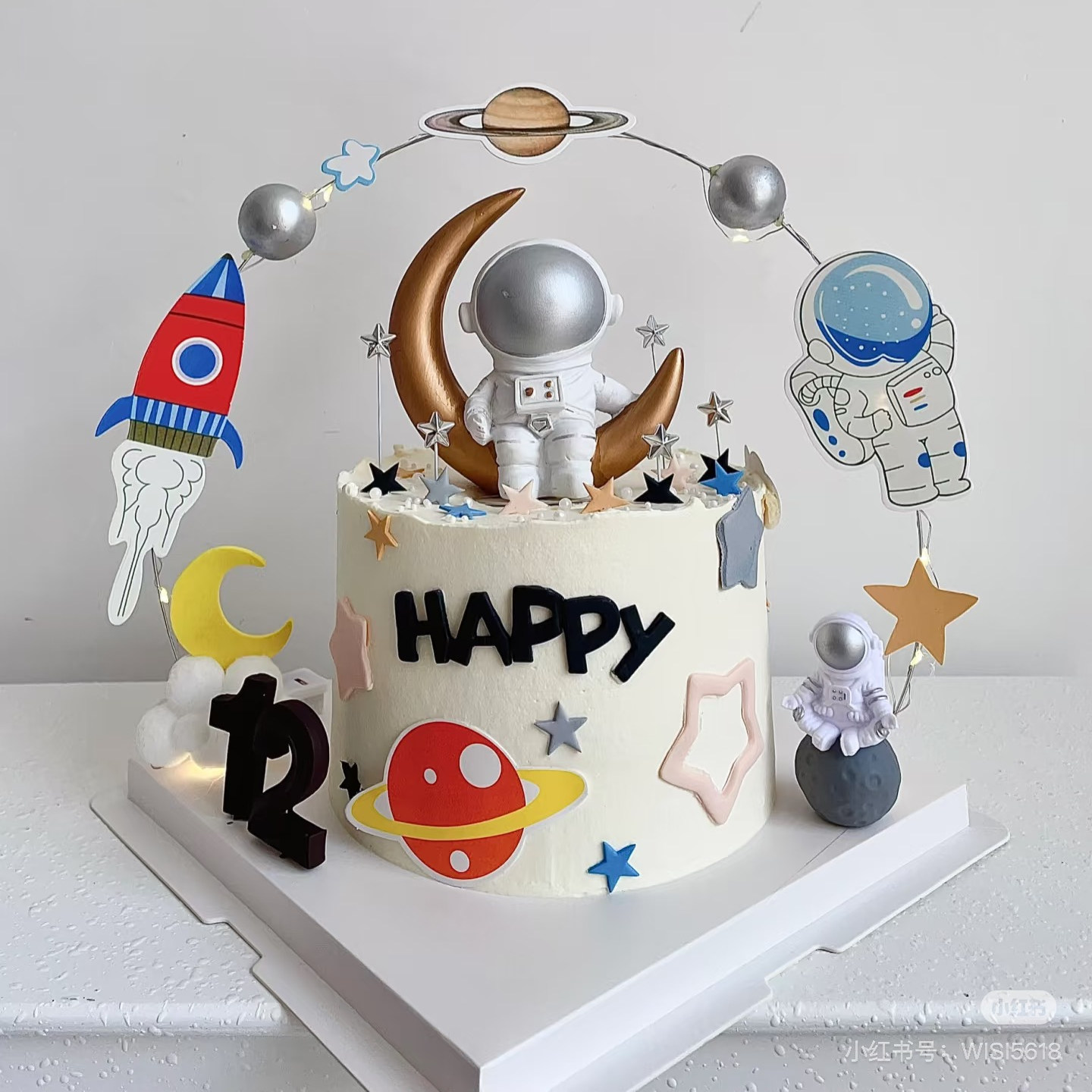 宇航员蛋糕装饰摆件飞船儿童宝宝周岁星球插件航天飞机太空人摆件