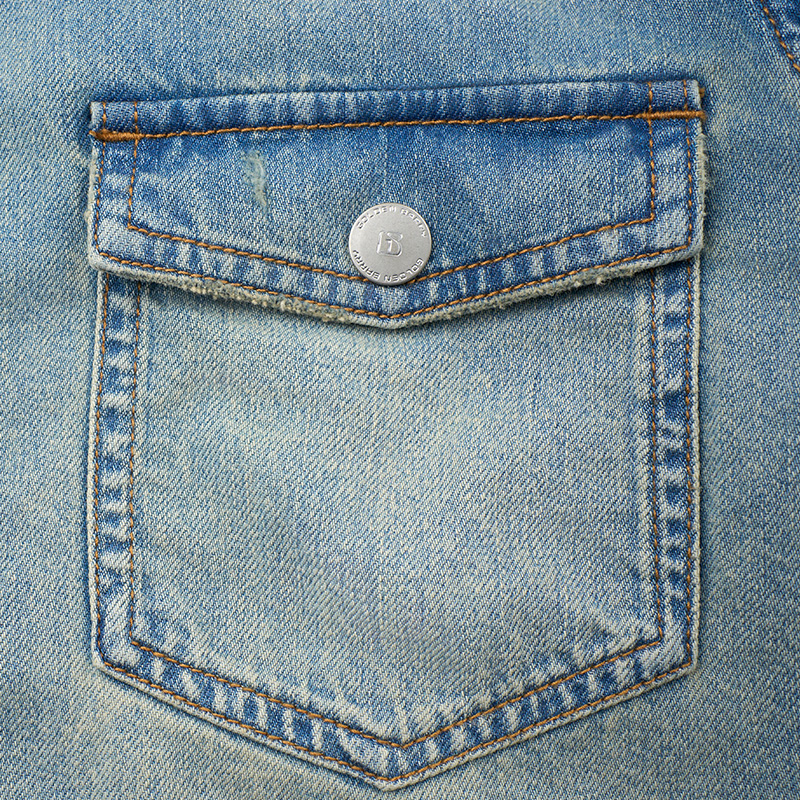 GOLDEN BARRY金和百瑞25新款做旧水洗磨破100棉牛仔衬衣212641