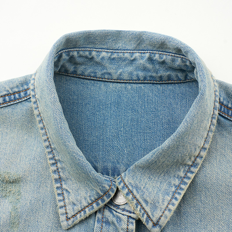 100棉水洗磨破翻领牛仔衬衣女
