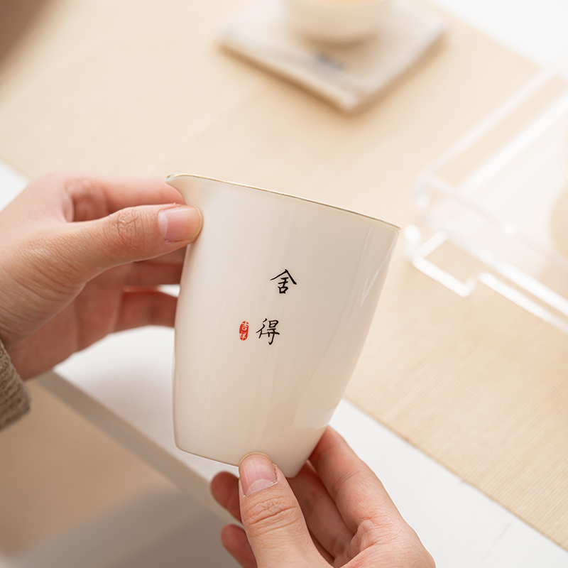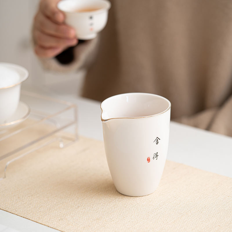 德化脂玉白瓷功夫茶具配件公道杯茶滤网一体陶瓷分茶器茶海过滤组